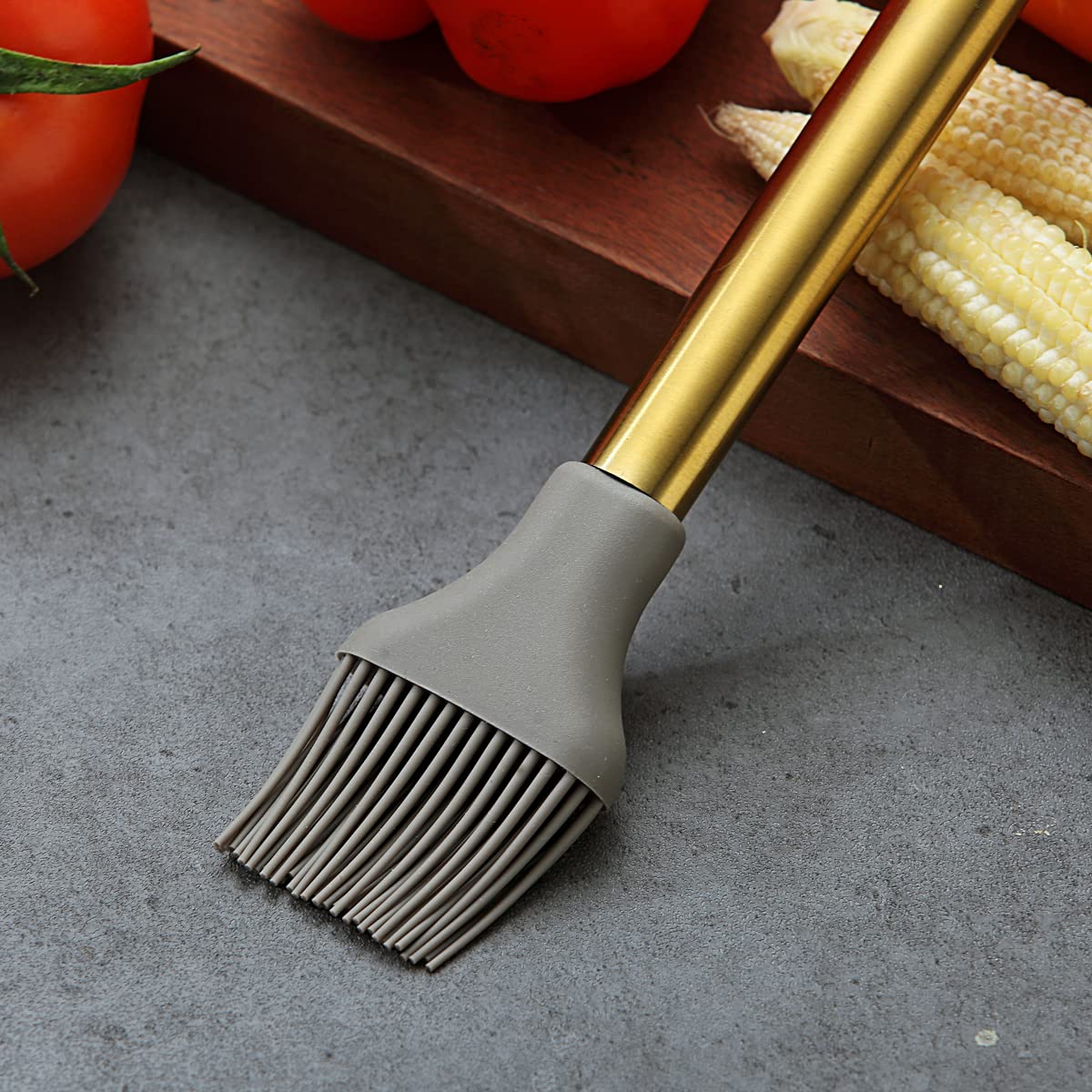 High Quality Stainless Steel and Silicone: Silicone head combine with High quality stainless steel handle ensures daily use without broken. Designed not to bend, break or rust. If you want to hang the cooking utensils with your utensil rack. It is not problem. Just use our gold utensils hooks for hanging.