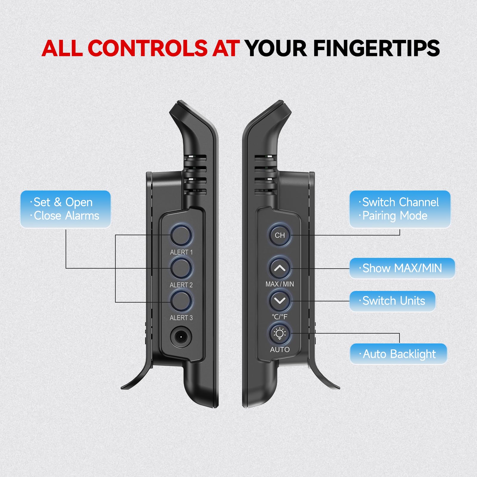 Automatic Smart Backlight: Thanks to the built-in light sensor, this thermometer automatically adjusts the backlight depending on the ambient lighting. Whether it's bright daylight or night, you'll always have clear visibility. You can also manually turn the backlight on or off based on your preference.