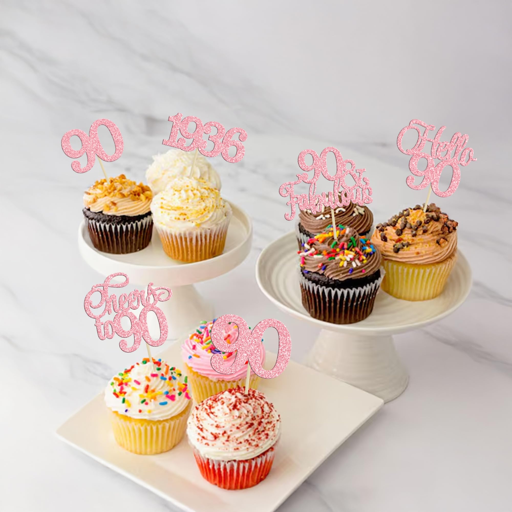 --Premium Material: These 90th Cupcake Toppers are made of high quality 300 gram card stock and food-grade toothpick, very safe to put them on cakes, cupcakes, ice cream, fruits, pie, dessert, cheese or any dish and food appetizer you want to decorate birthday party decorations.