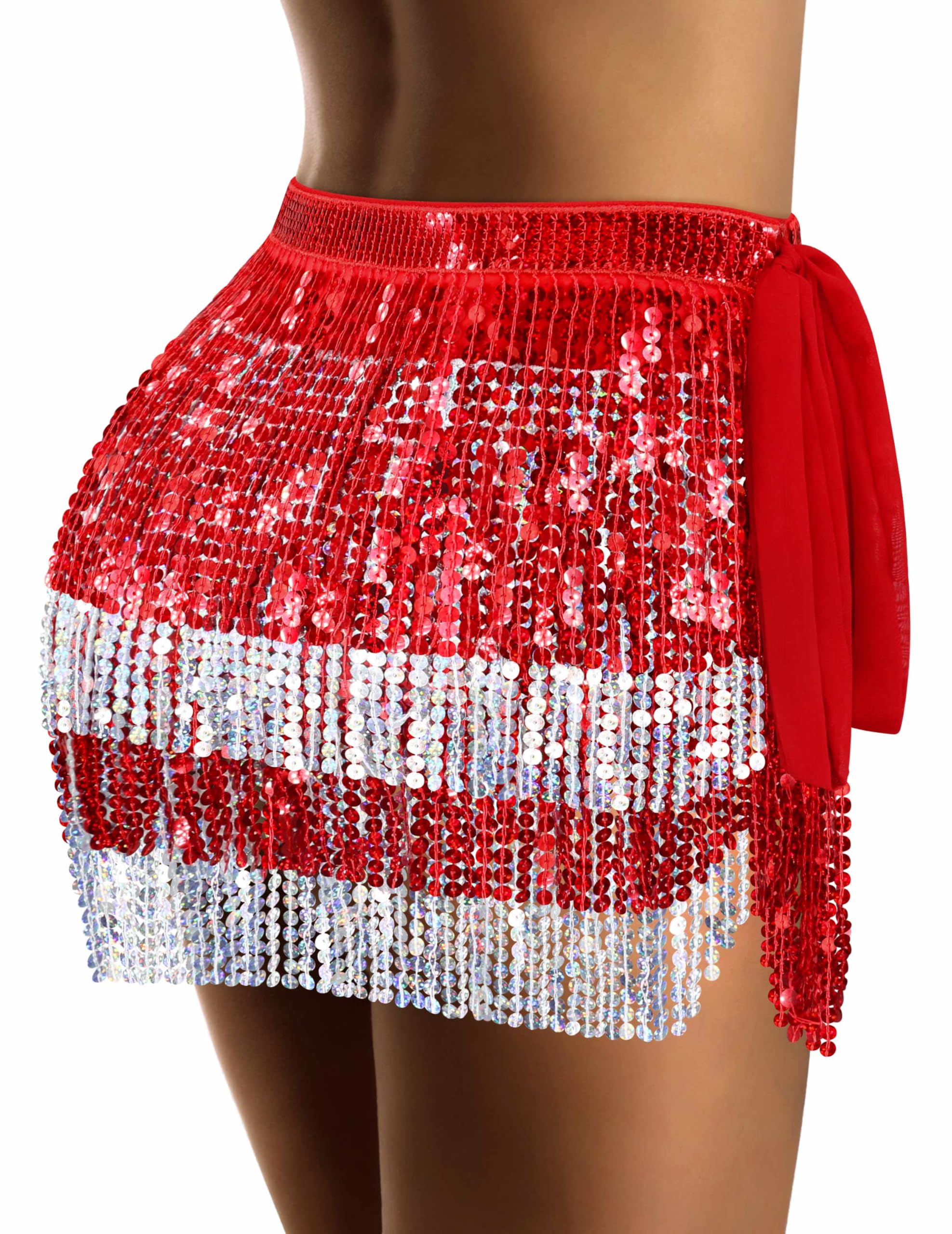 EXCELLENT FASHION ACCESSORY: The tassle sparkle skirt is a perfect choice to match your clothes and you can wear it as beach outfit, belly dance outfit, rave outfit and others. There are several colors for you to choose to meet your various needs. Wear the sparkle flapper skirt, you'll be sexy queen.