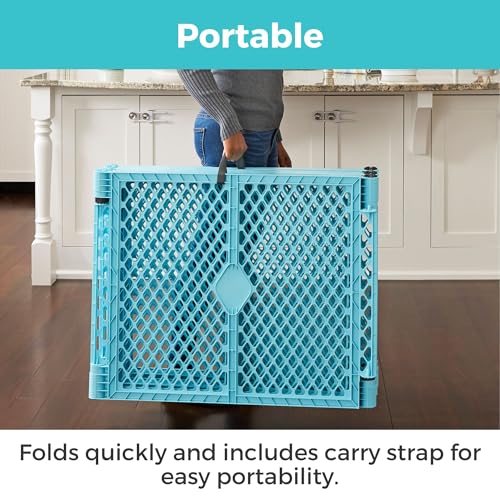 SAFE PLAY SPACE - Make an enclosed area free from safety hazards for kids. The 6-panel play yard encloses up to 18.5 sq. ft. and is 26 in. tall. Our portable baby playpen folds quickly and includes a carry strap for easy portability.