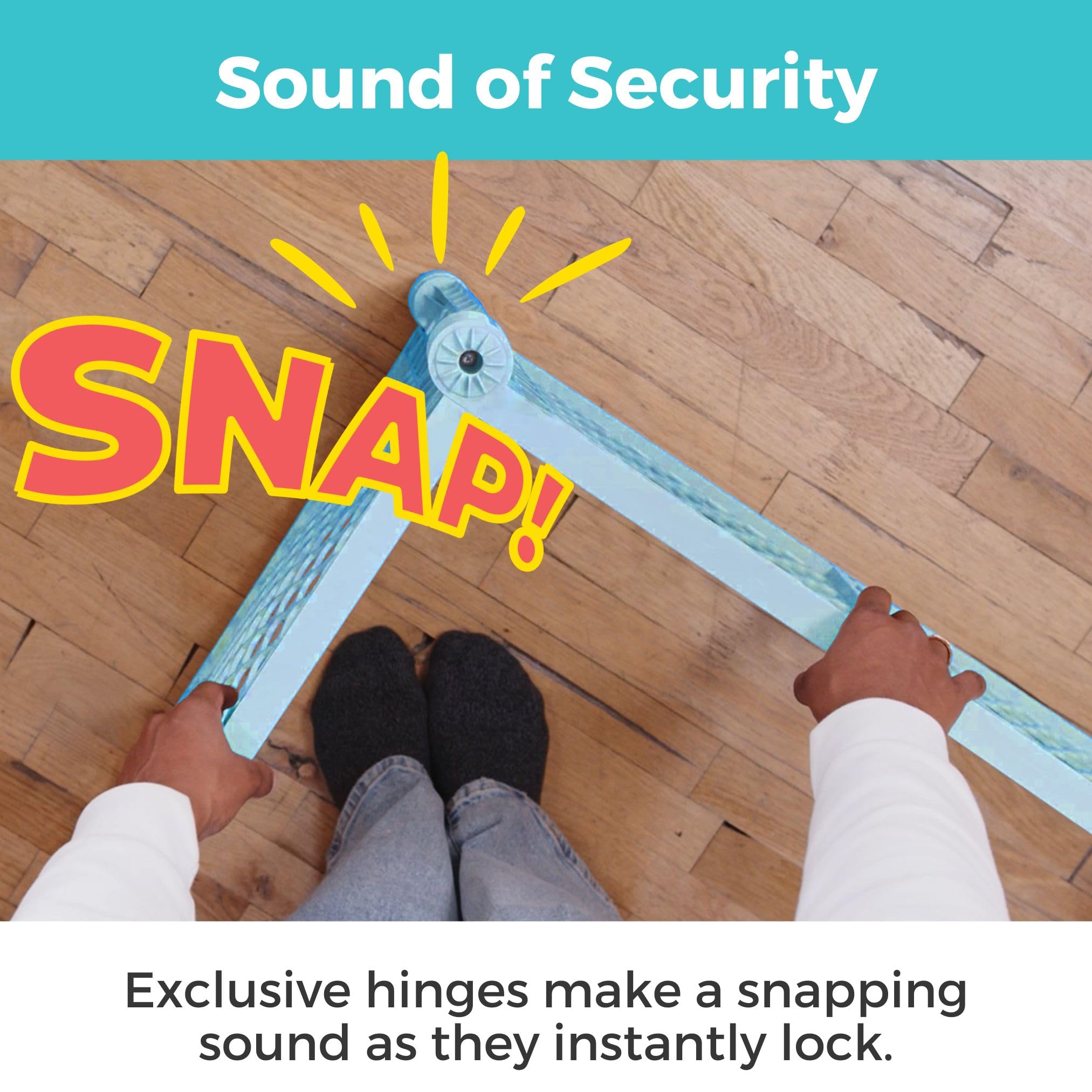 EASY TO USE - The baby fence has self-locking hinges that only bend in one direction. The clicking noise ensures the hinges are locked. Use our Superyard Wall Mount Kit (sold separately) to convert the play yard into an extra-wide baby gate.