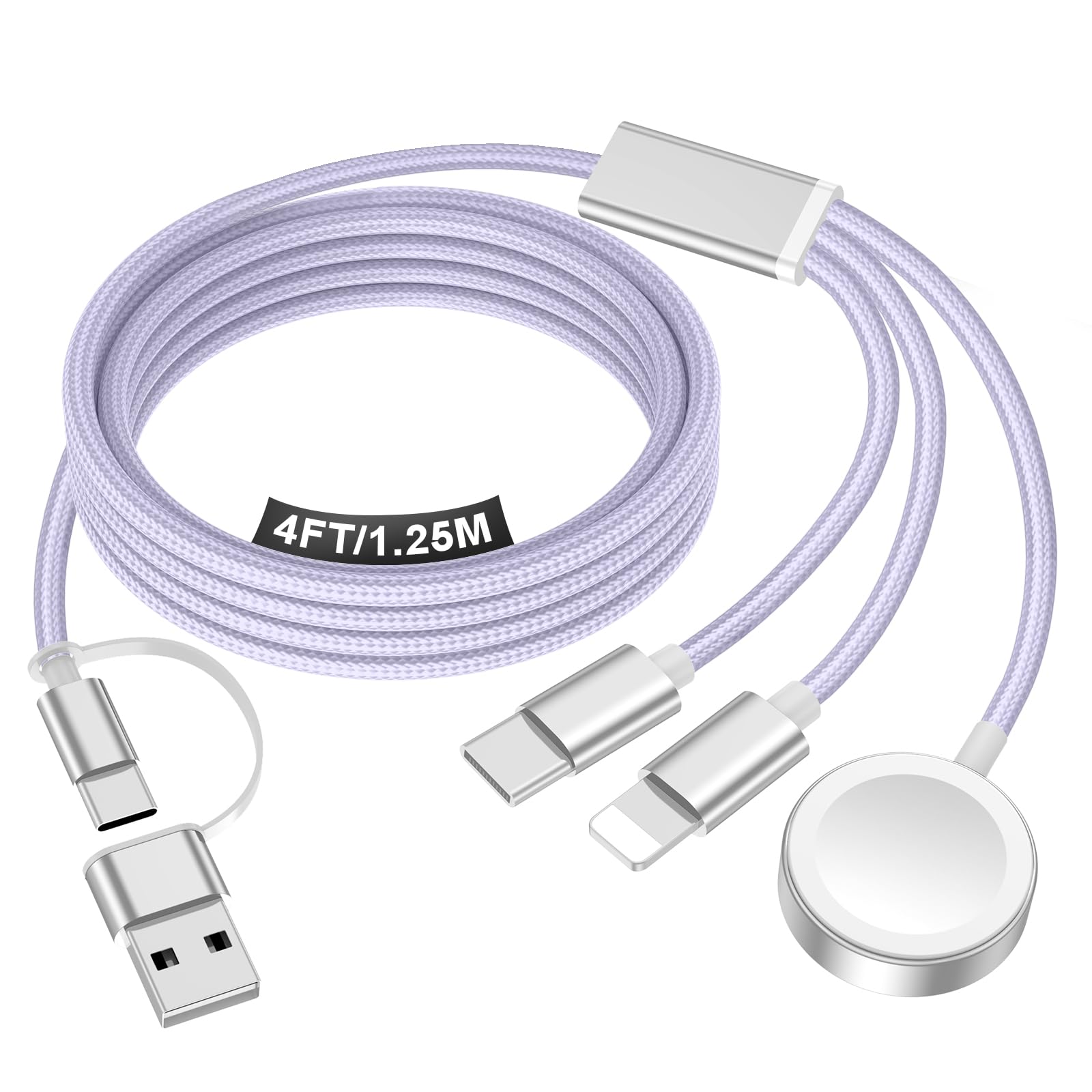【Advanced Safe & Rapid Charging】Experience enhanced safety and speed,delivering efficient power to your devices.This certified multi charger cable supports USB Type C cable fast charging and USB lightning cable compatibility, delivering rapid power to iPhone cable, USB C cable pack, and for Apple Watch.