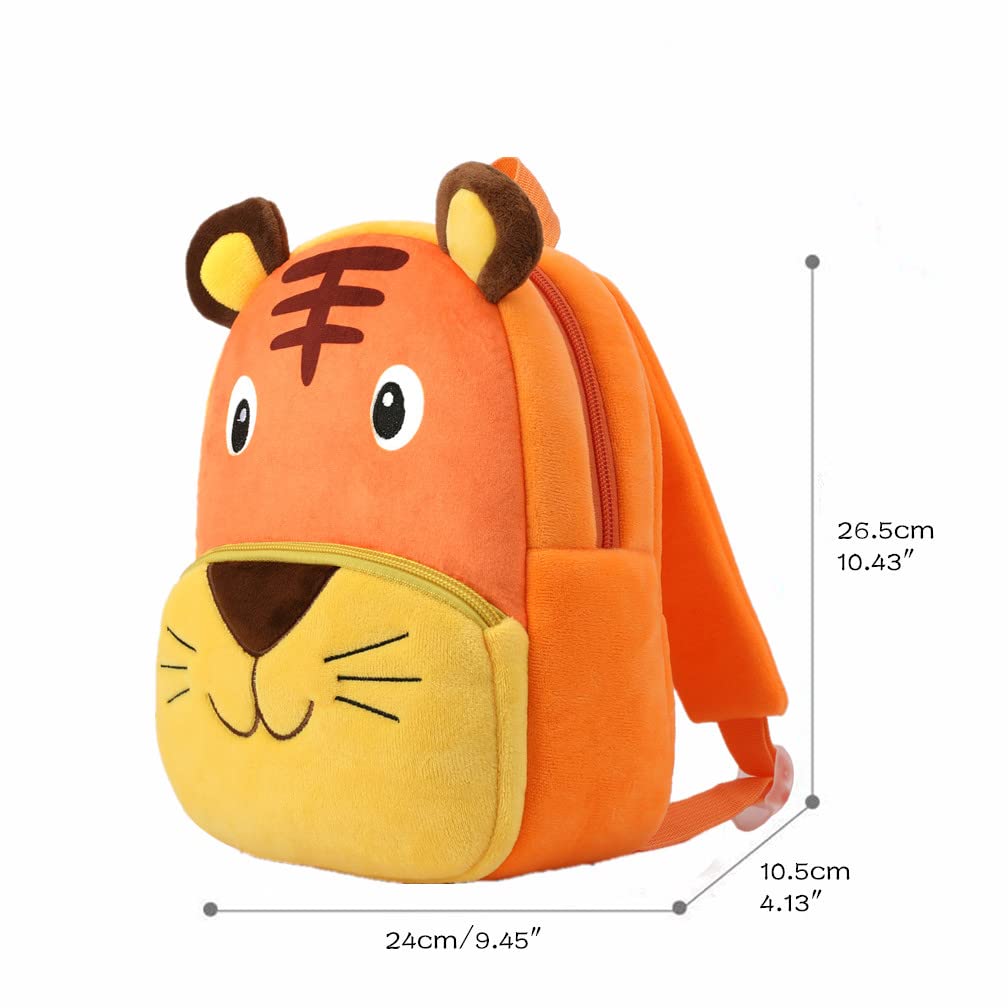 Demension : Our toddler backpack is 10.4"*4.1"*9.5"(26.5*24*10.5cm) in height* width*length.Fashionable, light-weight, soft and colorful. Perfect gift for baby toddler children