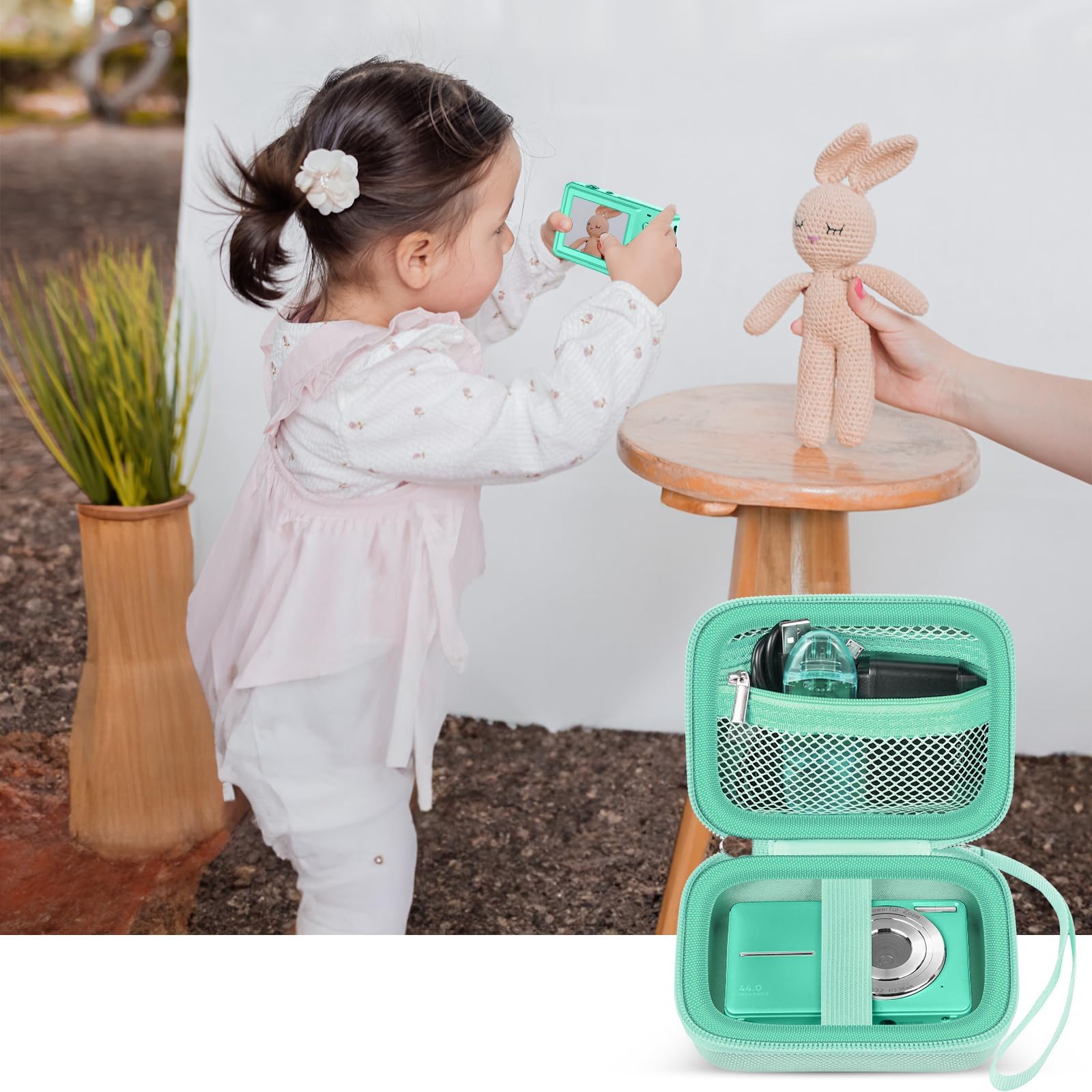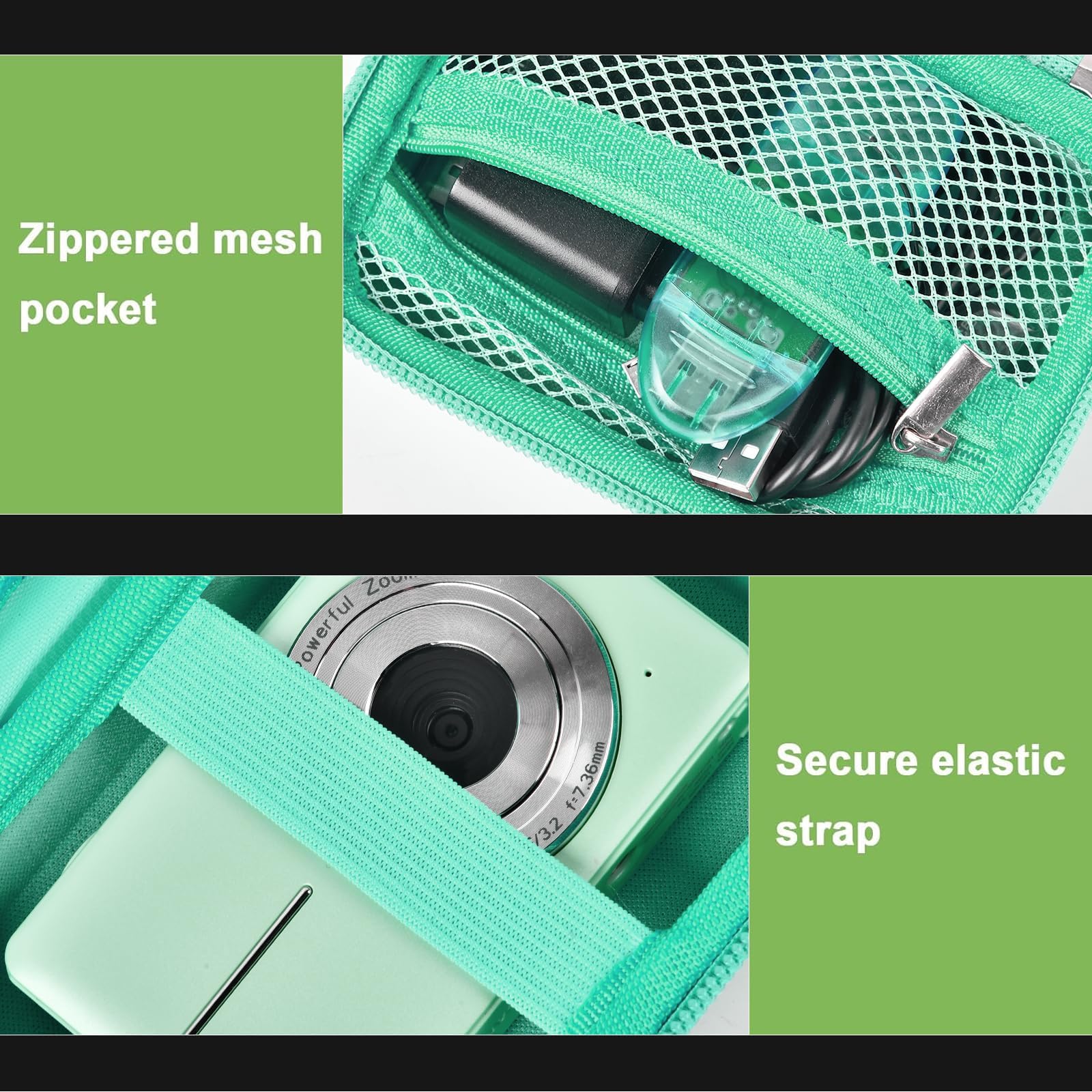 Spacious zippered mesh pocket- Utilize the practical zippered mesh pocket to store various video camera accessories like chargers, batteries, SD cards, SD Card Reader and data cables. Stay organized, keeping all kids digital camera essentials within easy reach.