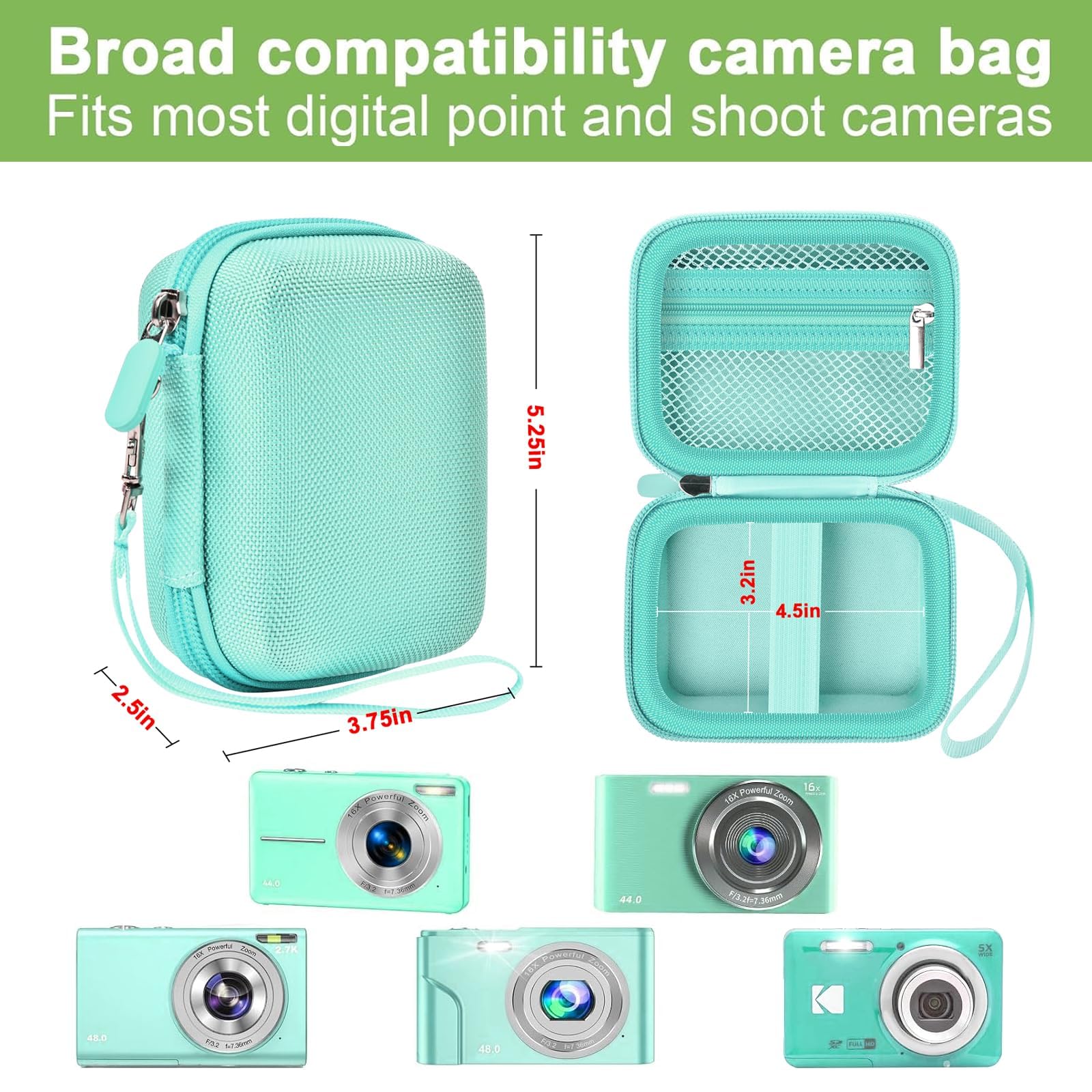 Broad compatibility camera bag- Digital camera case compatible with CAMKORY/ for VAHOIALD/ for IWEUKJLO/ for KODAK/ for Nsoela/ for Saneen/ for Animdreti/ for Polaroid/ for Hauyince/ for BEVLXNIV/ for Zostuic/ for VJIANGER/ for Lecran/ for Animdreti/ for BEVLXNIV digital camera. Keep your kids camera and accessories organized in one place, providing convenience and functioning as a camera kit! (Note: case only, digital cameras and compact cameras accessories are not included)