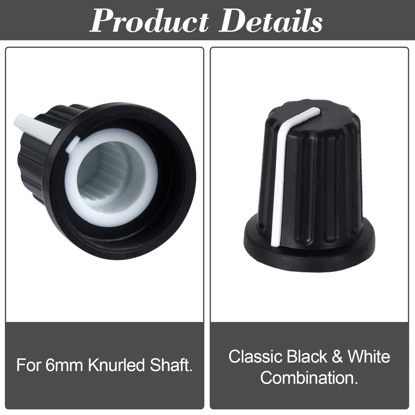 Package Included: You will get 6pcs black white Knurled Shaft Potentiometer Knob, fit for most 6mm/ 0.23inch diameter 18 teeth knurled shaft, no screw hole on the knob. Please verify the shaft diameter of your guitar before purchase!