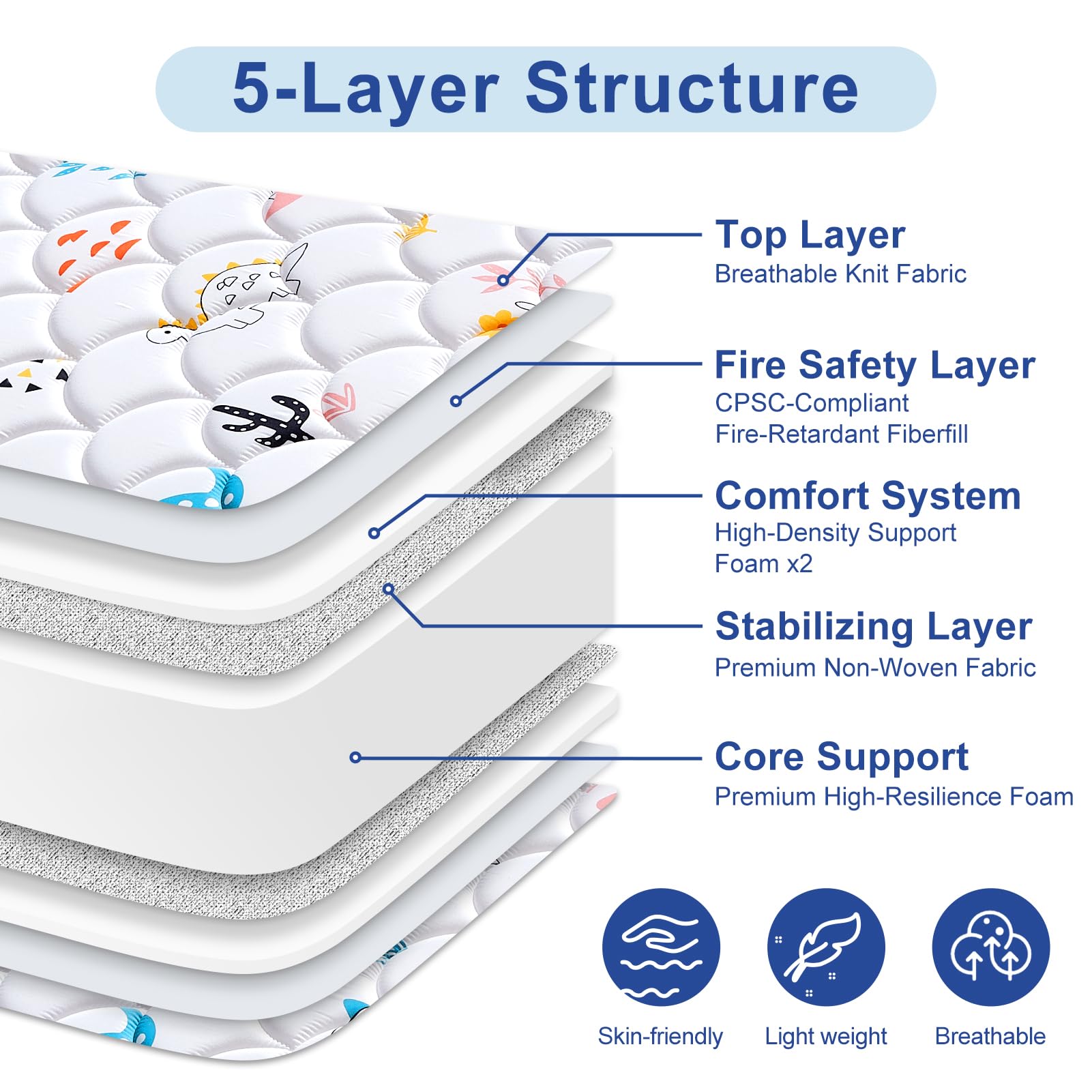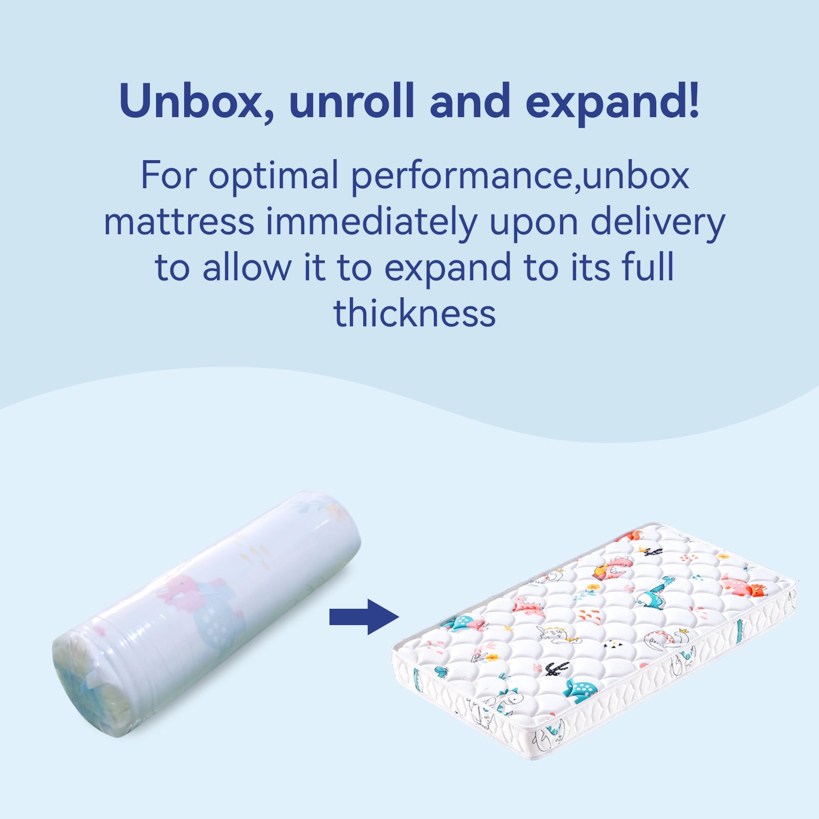 Firm Support: The crib mattress is made of high density foam. It provides good support and stability when the baby rolls over, avoiding the risk of personal injury and suffocation