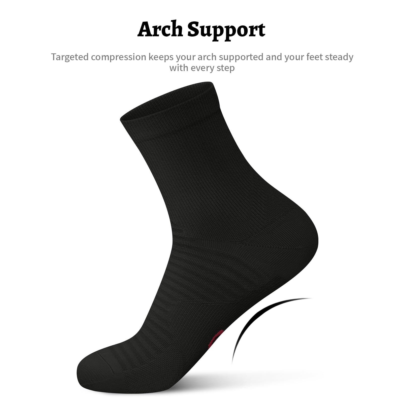 [TARGETED ARCH COMPRESSION SUPPORT]: These running socks are designed with targeted arch support compression area, to provide stable support for the foot, enhance foot blood circulation, reduce foot fatigue and prevent edema during prolonged activities.These compression ankle socks are ideal for exercis, like running, skipping rope, hiking, gym, walking, camping, climbing, jogging, cycling or others