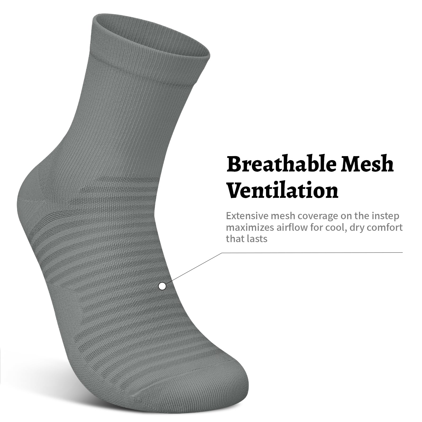 [ Ultra Breathable & Moisture-Wicking]: Quick-dry fabric + Mesh weaving technology, keeping feet dry all day--The atheltic compression socks main made of breathable materail. The polyester’s hydrophobic + Highly breathable nylon fabric, and sweat is not easily retained, keeping feet dry and reducing blister risk during intense workouts.