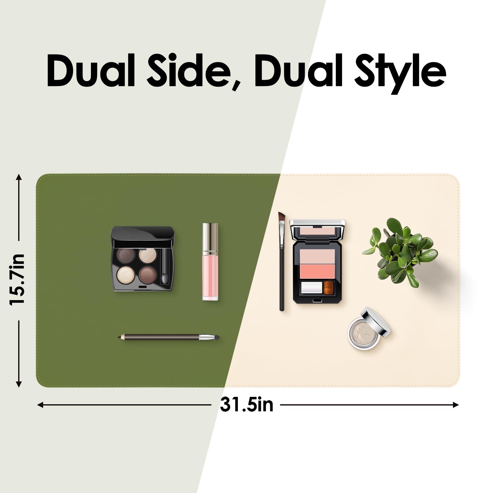 【31.5 x 15.7 in Leather Make Up Mat】TOHONFOO vanity mats are made of durable PU leather material, whitch can protect your vanity table from scratches, stains, spills, heat and wear