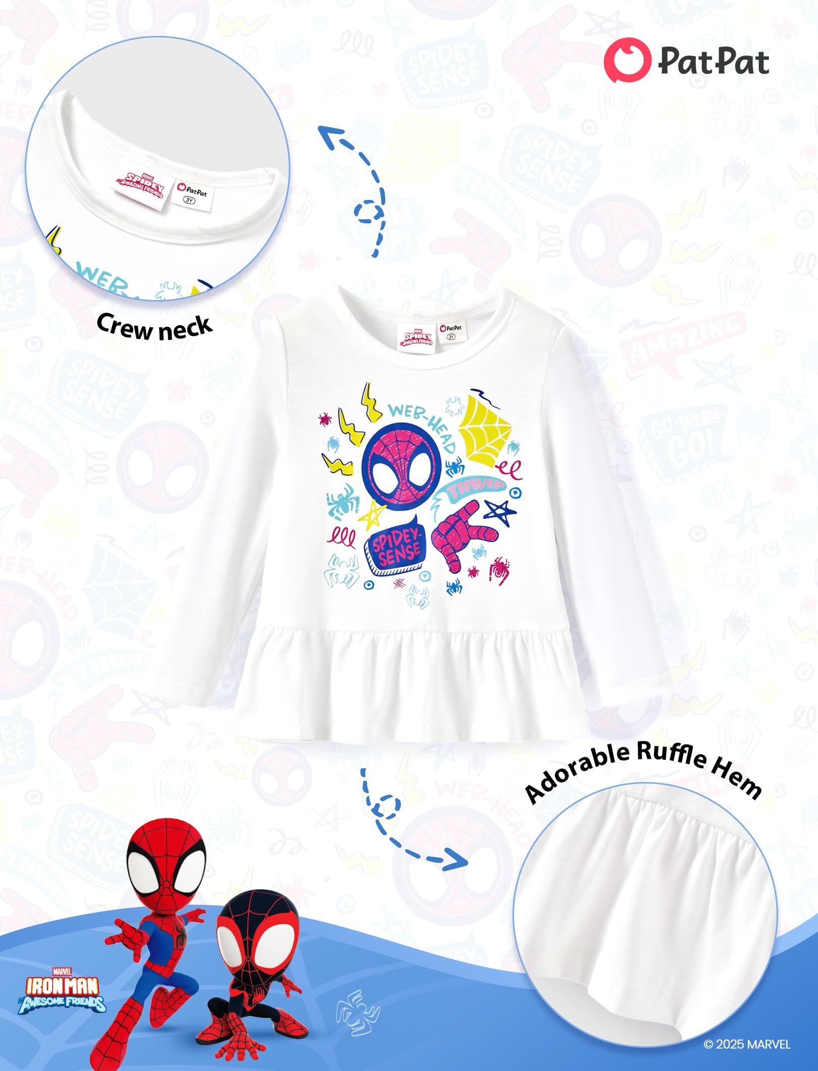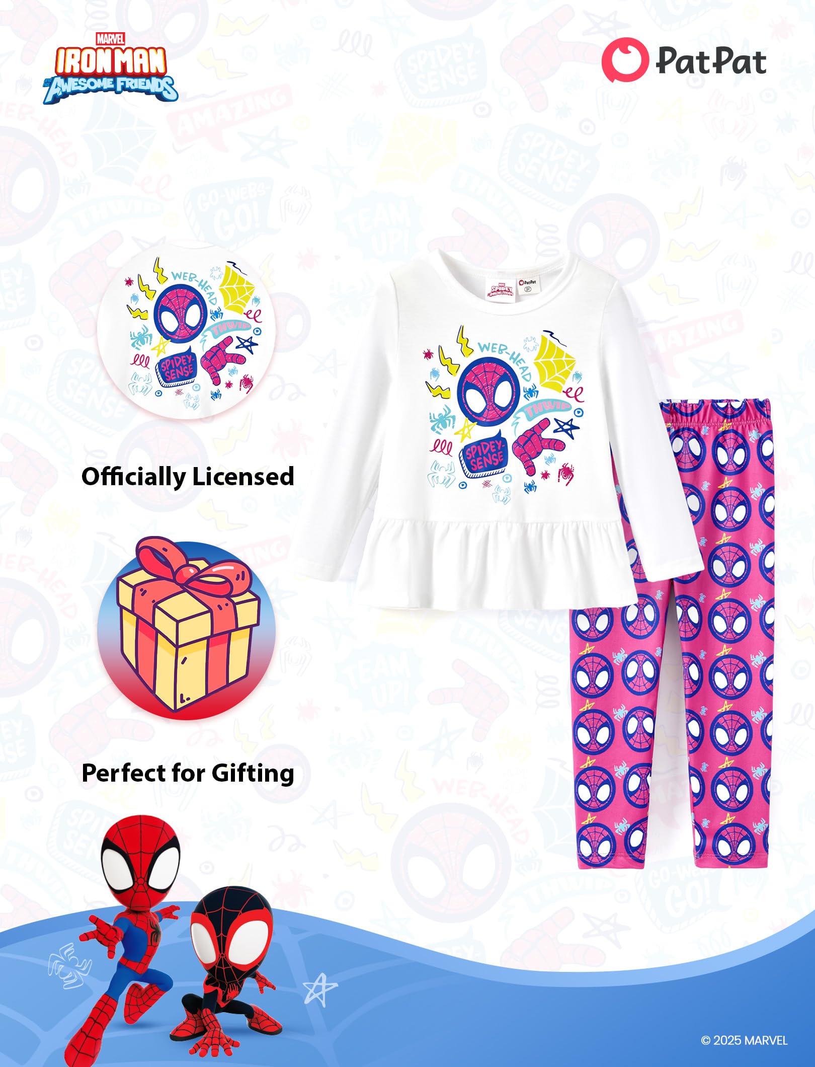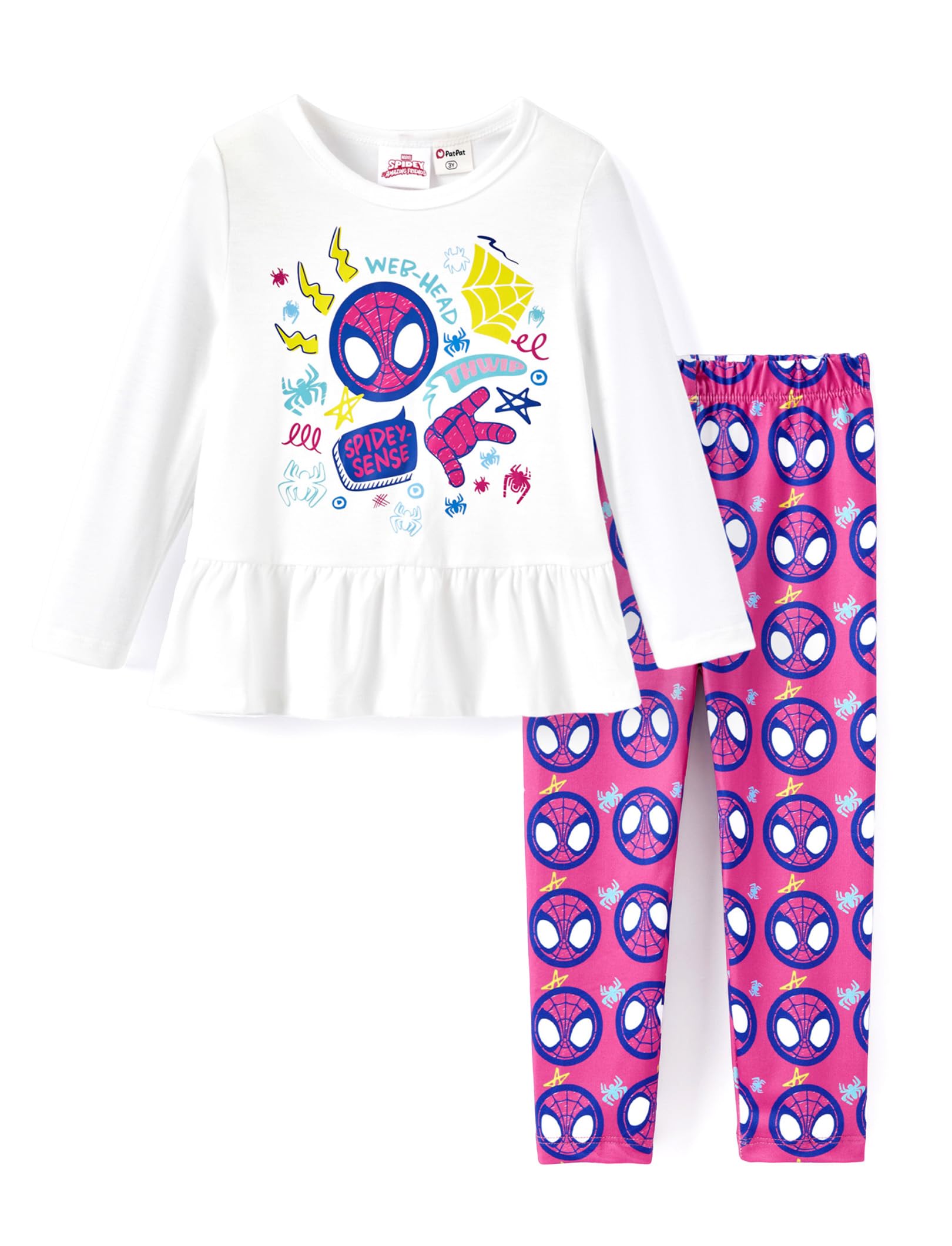 Heroic & Playful Design: Features a ruffle-hem shirt with Ghost-Spider in comic style, paired with purple leggings printed with mini Ghost-Spider faces. Cute, bold, and photo-ready. This two-piece girls sweat set highlights her love for superheroes in a playful way