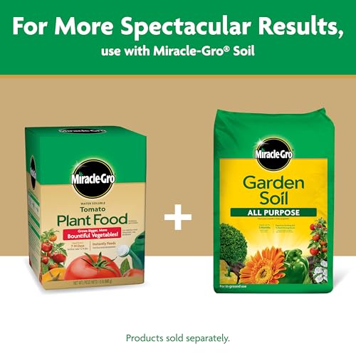 Product Description Miracle-Gro Water Soluble Tomato Plant Food instantly feeds to grow bigger, more bountiful tomatoes and vegetables compared to unfed plants. Use our plant food with the Miracle-Gro Garden Feeder or any watering can, and feed every 1-2 weeks. Safe for all plants when used as directed. Miracle-Gro Water Soluble Tomato Plant Food will help you get better results. From the Manufacturer Miracle-Gro 100042 Tomato Plant Food 1.5 lb.