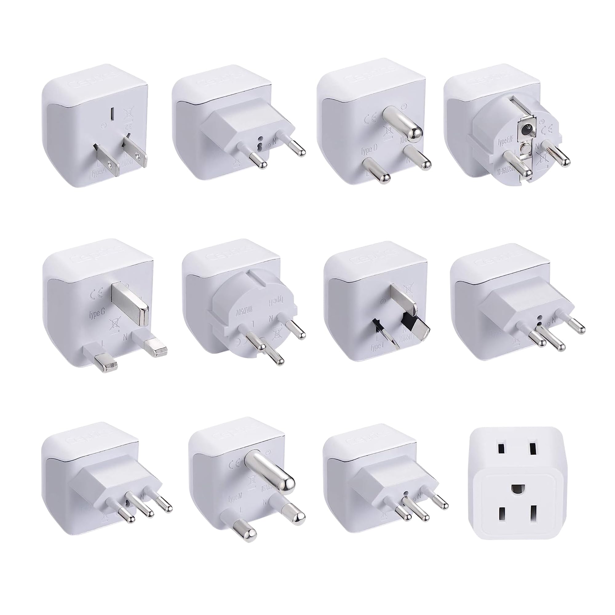 Includes 11 Grounded Types of International Adapters - AE (Type C), UK (Type G), AU (Type I), EU (Type E/F), JP (Type A), Switzerland (Type J), Israel (Type H)