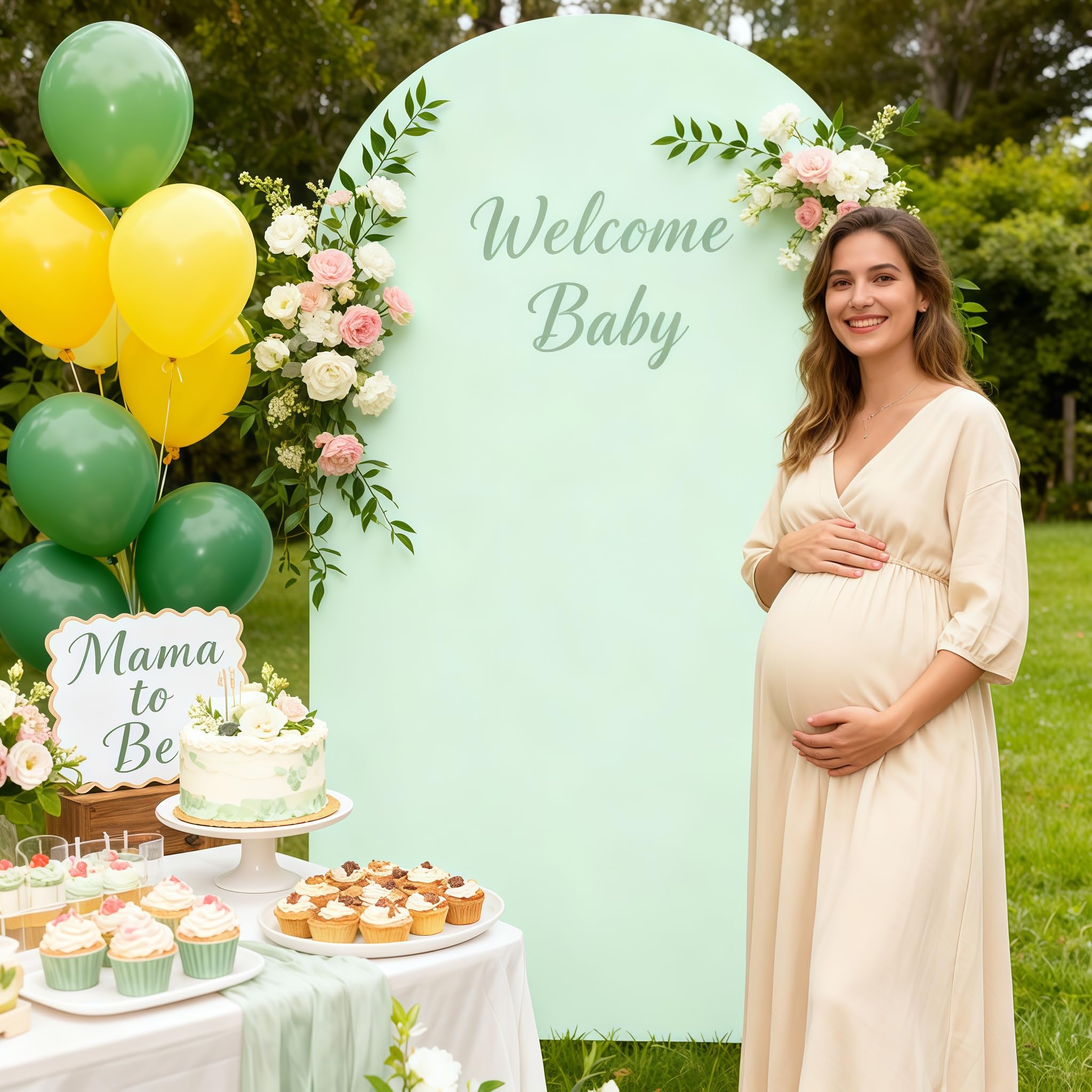 【Upgraded Stretchy Quality Material】- The round top arch background cover is made of premium quality polyester fabric, super soft and don't have any wrinkles or creases. No reflection, instantly creates a soft photo backdrop