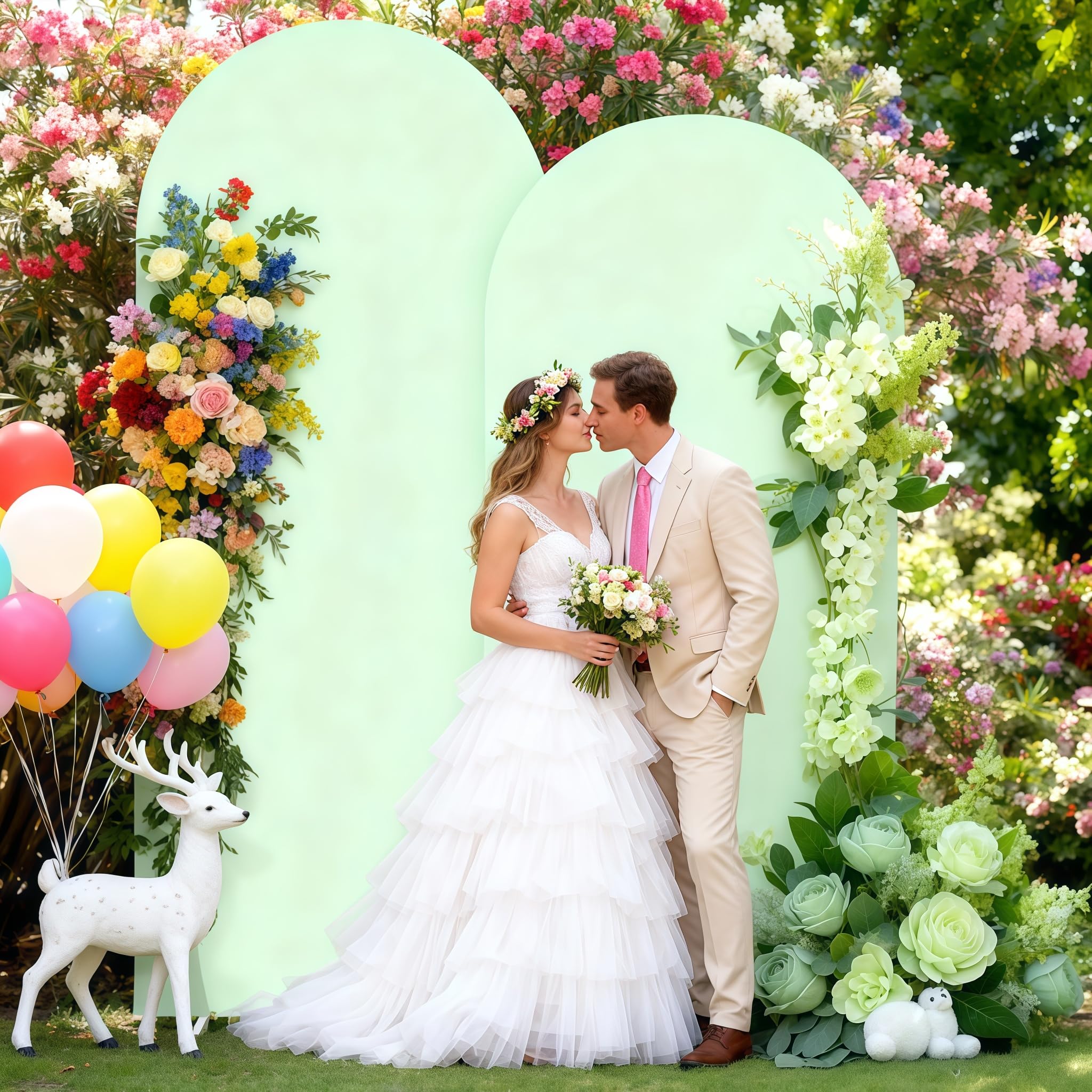 【Double-sided Arch Cover Size】- Fit on 6.6 FT length x 3.3 FT width Chiara backdrop stand perfectly, slipping over the arch frame with ease. Used as your unique photo background for wedding ceremony birthday party baby shower banquet