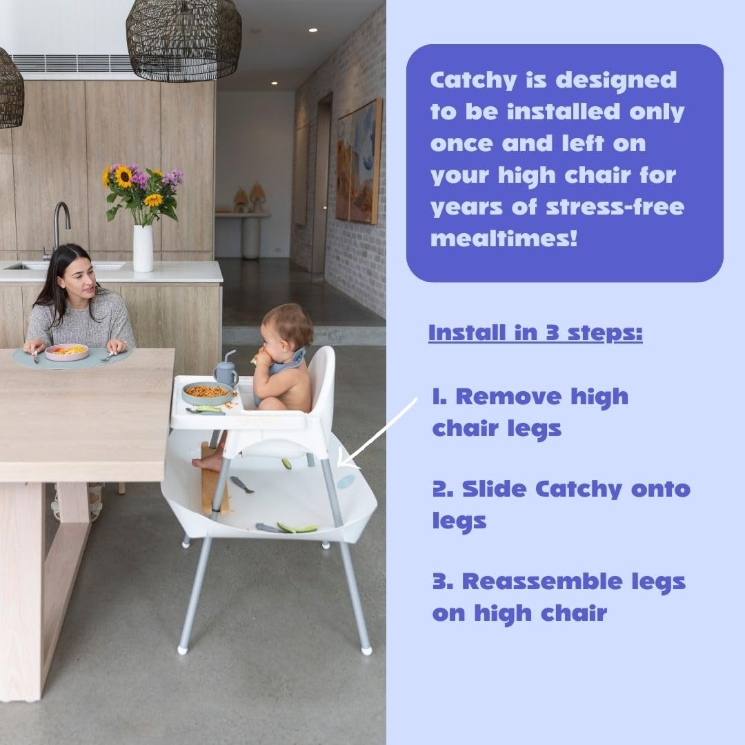 FOOD CATCHER ACCESSORY FOR HIGH CHAIRS. As seen on Shark Tank, our world first patented invention is loved by over 300,000 parents worldwide. No more stressing every time your baby drops food, it is a dream come true for messy meal times!