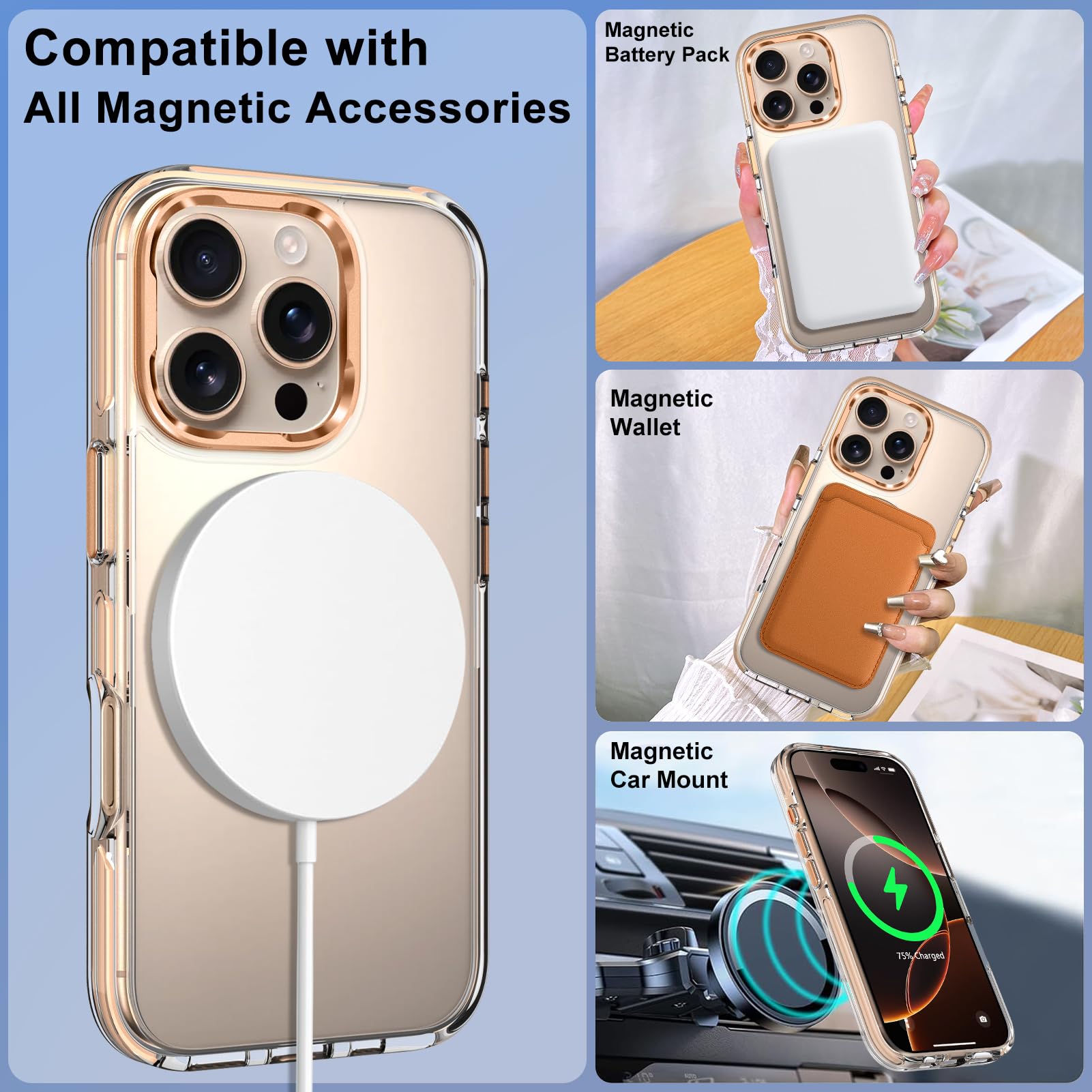 Compatible with MagSafe: Our transparent phone case with magnetic ring is compatible with most Magsafe accessories. You can easily attach it to your magnetic accessories and the case supports wireless charging