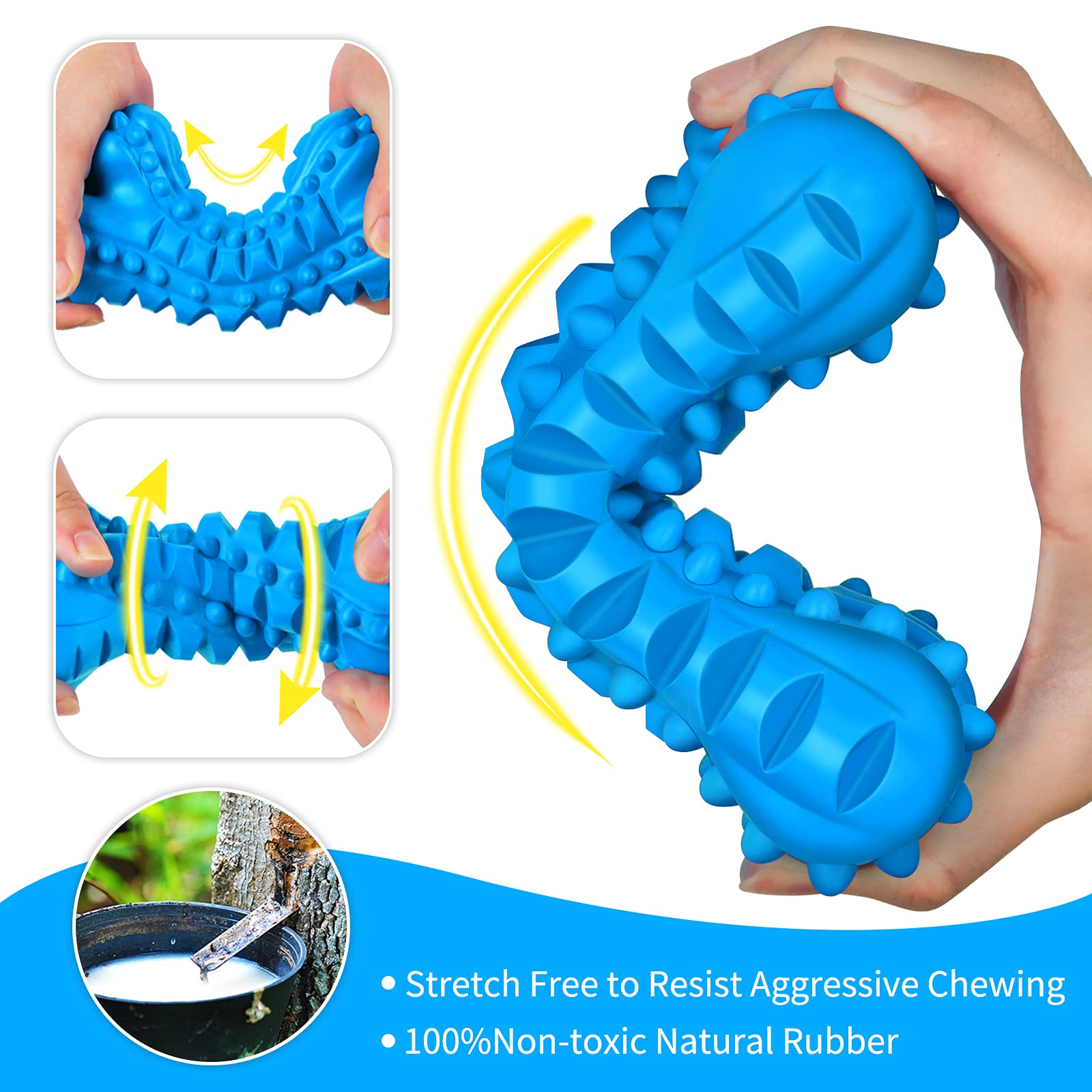DOG CHEW TOYS FOR AGGRESSIVE CHEWERS: Dogs love bones, the non-toxic natural rubber large dog toys featured with sawtooth edges make dog chew bones stretch easily that drive dogs crazy. Pet toys with special textures makes toys for dogs have extreme flexibility and strength to 360 degrees of deformation, the stronger chewing force, the greater rebound to resist aggressive chewing. Durable dog toys for aggressive chewers weight between 20lb to 80lb to satisfy their chewing needs