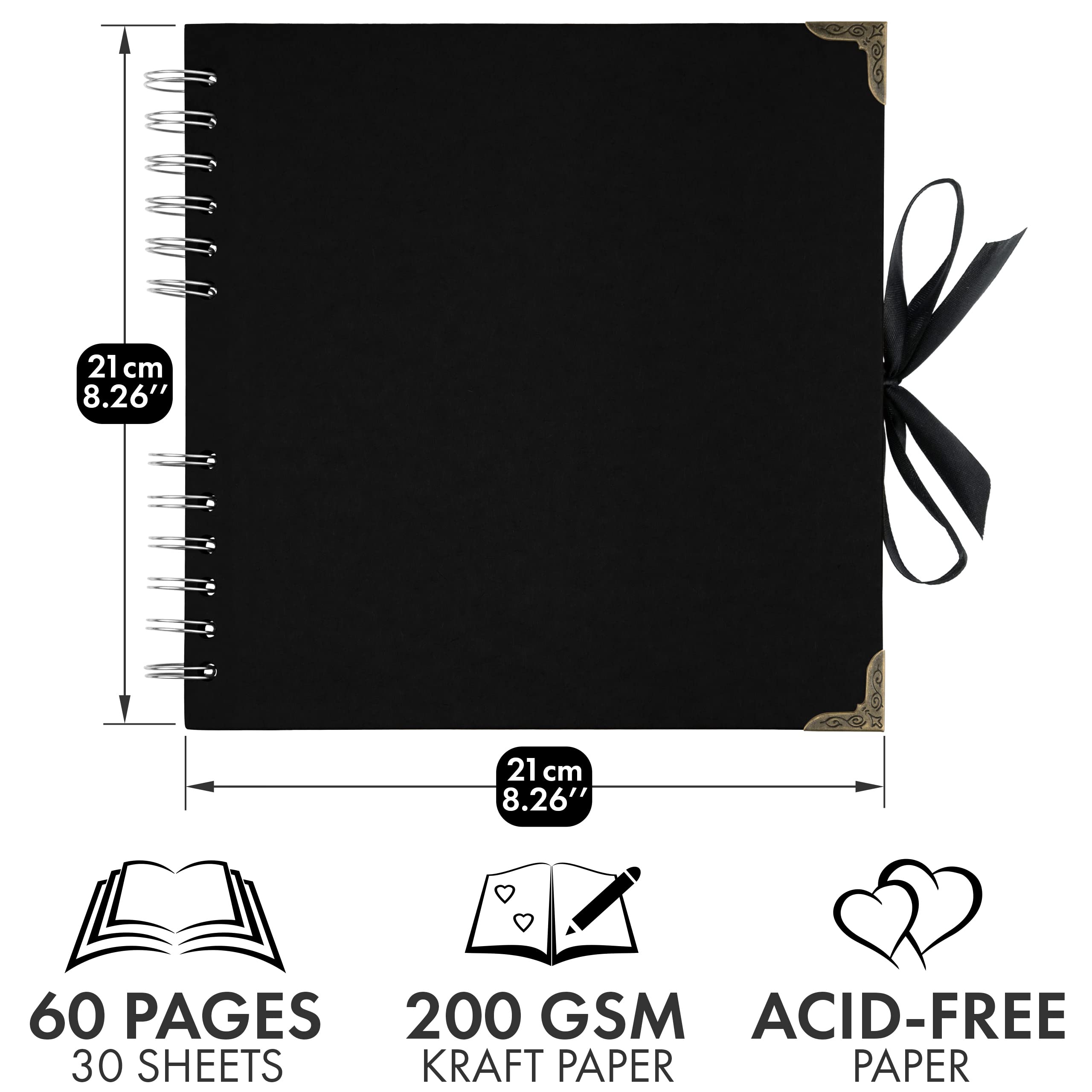 This 8 x 8 inch kraft memory book is durable and suitable for long term storage for you and your loved ones beautiful memories. It has 30 sheets, 60 pages of 250gsm high quality thick Kraft paper, designed with ribbon closure, hard cover and corner protectors
