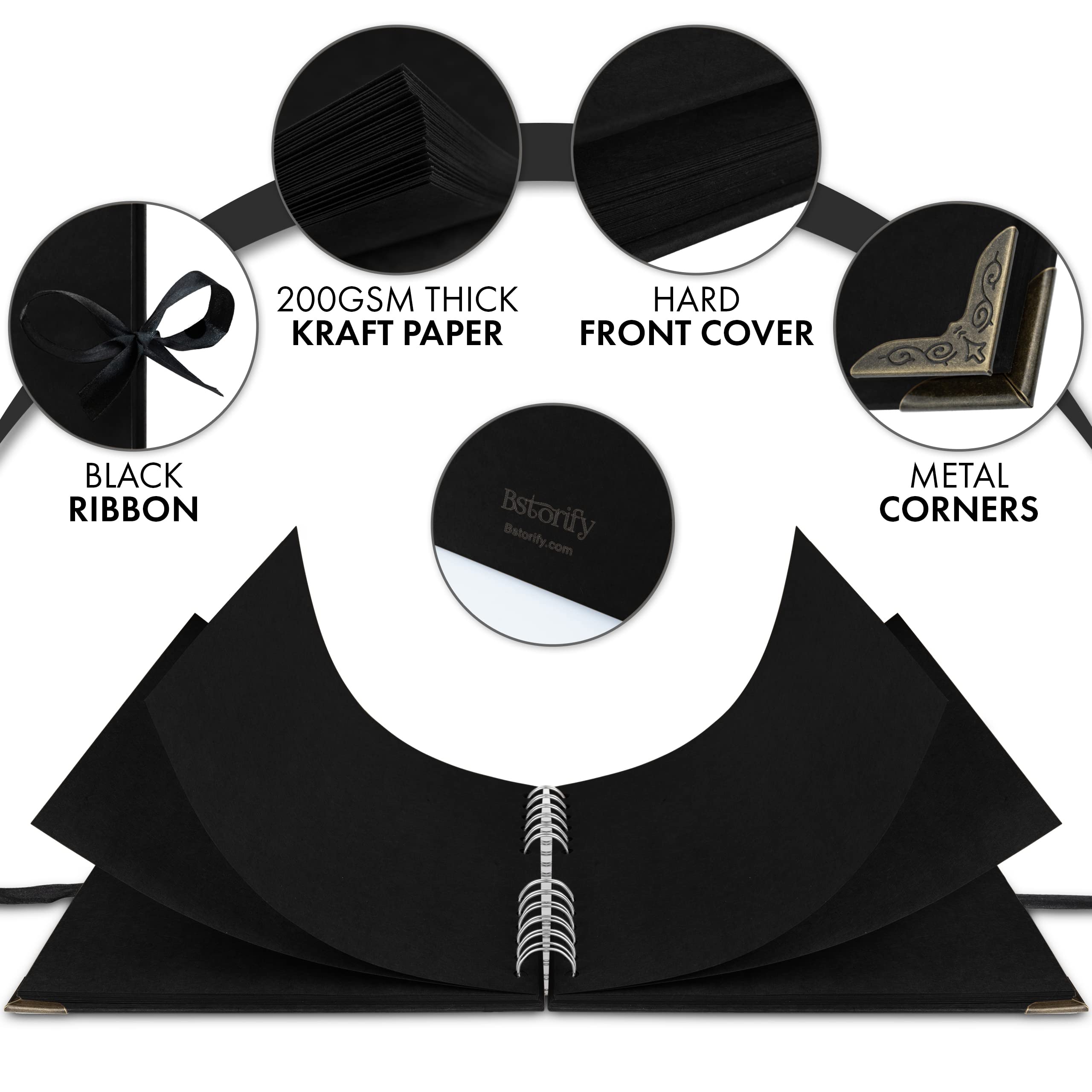 The spiral bound spine allows the scrap book photo album self adhesive pages to expand to fit in your photos, postcards, souvenirs. You can tie the ribbon into a bow or other style that you like and make your photo album scrapbook as individual as your memories and keep them endlessly