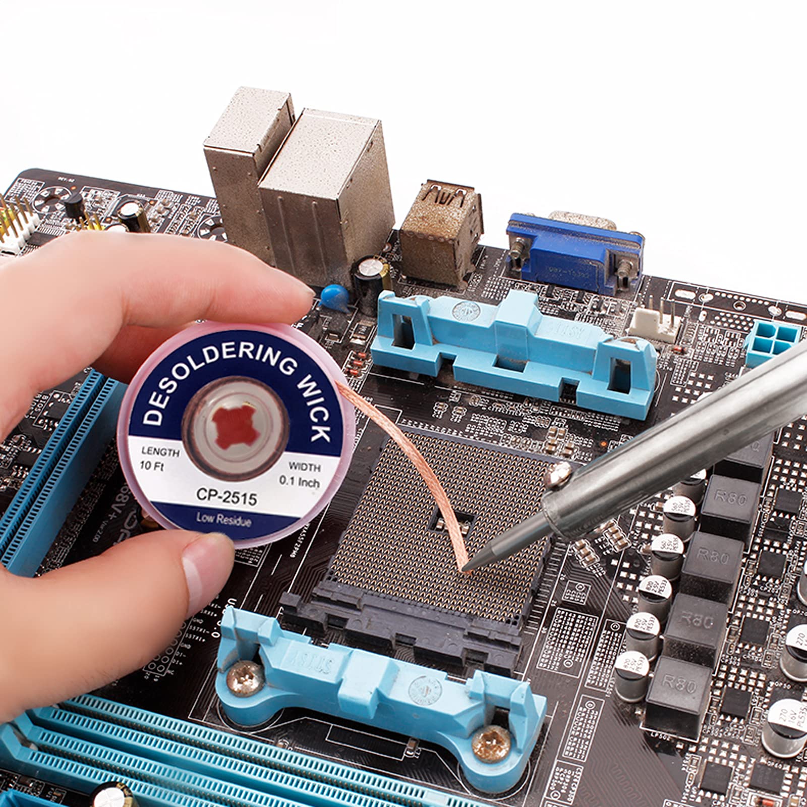 1.The solder wicks can be used to correct mistakes with small boards on PCBs, remove relays and other components from printed circuit boards, re-solder mechanical keyboard switches, unsoldering old wire from devices, desoldering computer parts such as a motherboard,clean alloy on smd components and more