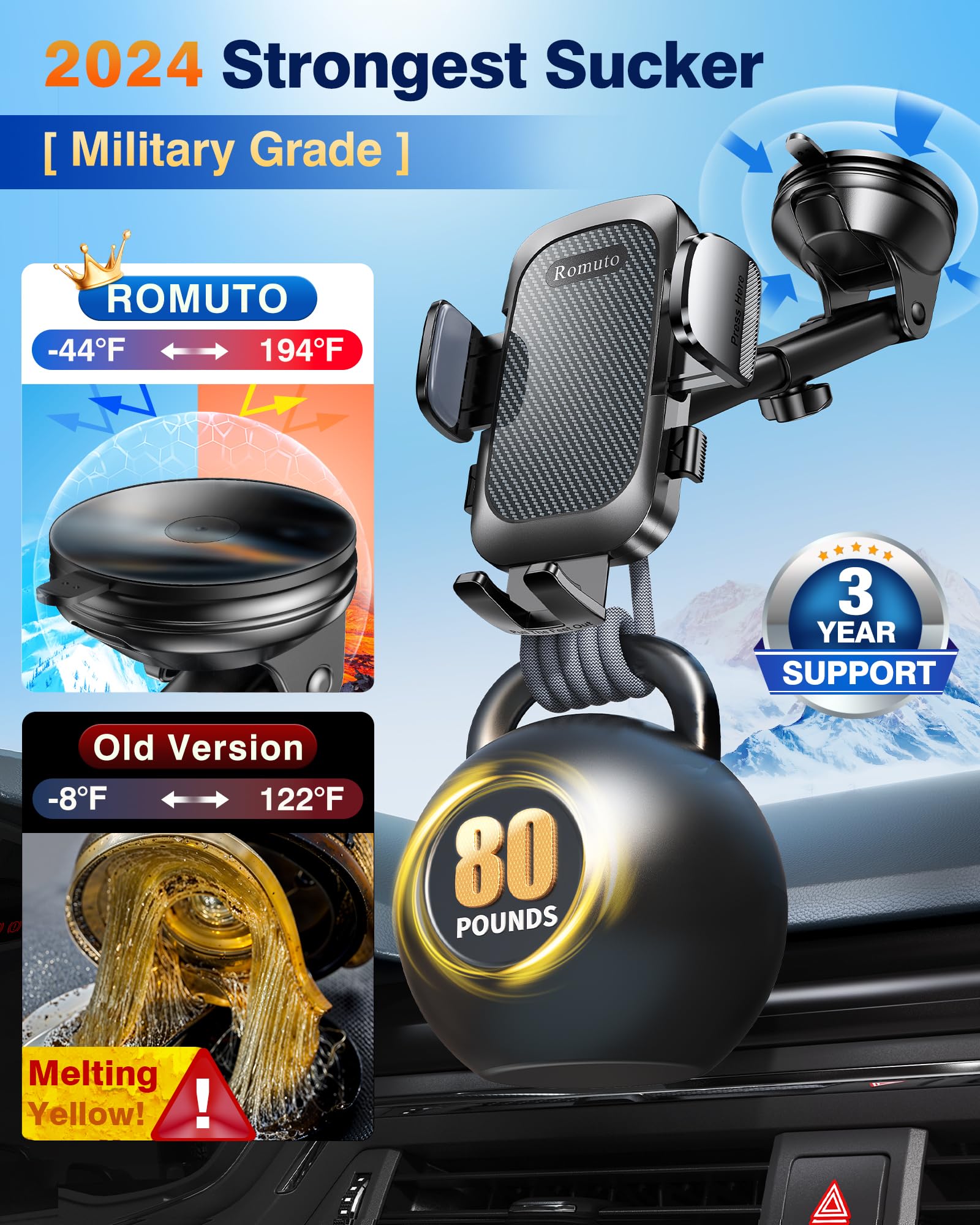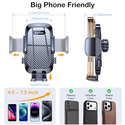 Romuto Phone Holders for Your Car Phone Holder Mountใ€Super Suctionใ€‘Cell Phone Mount for Car Accessories for Women Men Windshield/Vent/Dash Truck Stand Desk Mount Clamp Holder for iPhone Samsung Camera