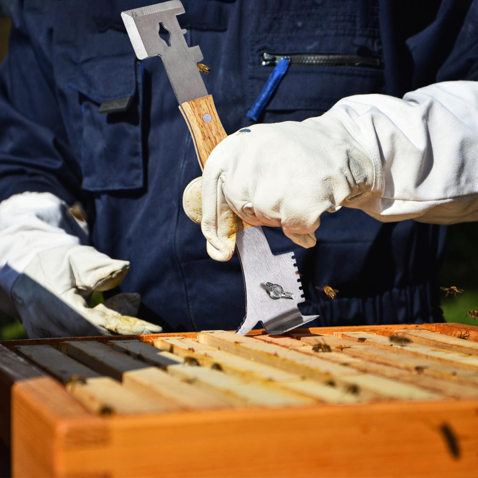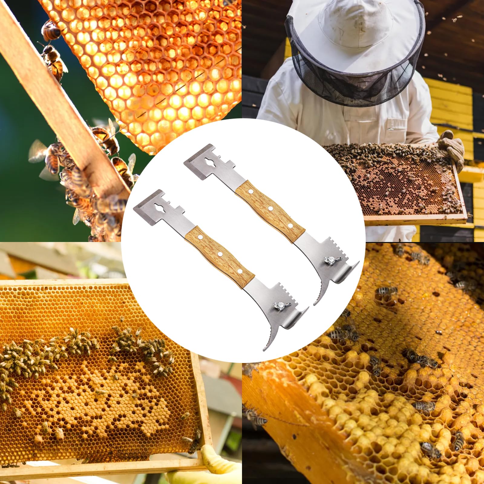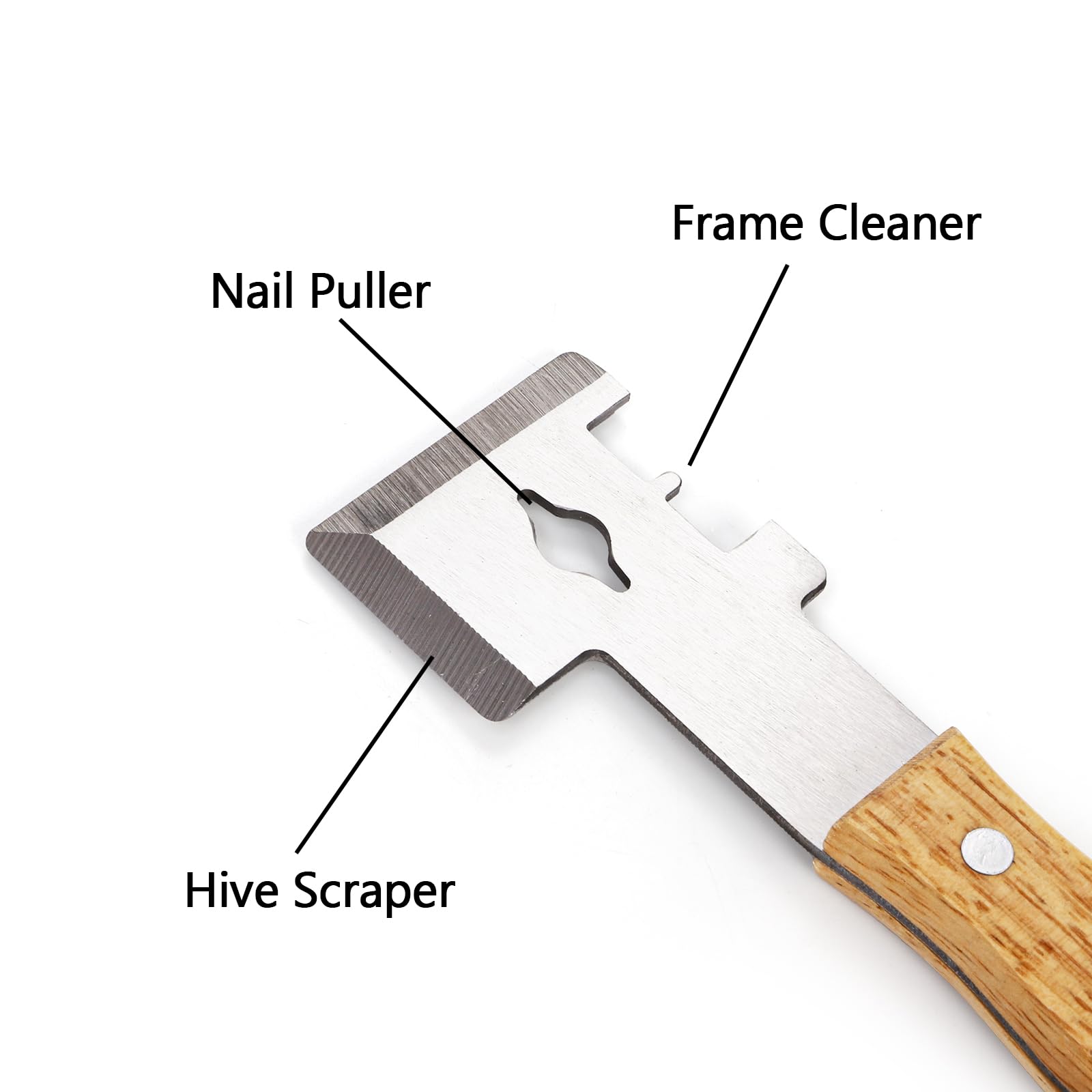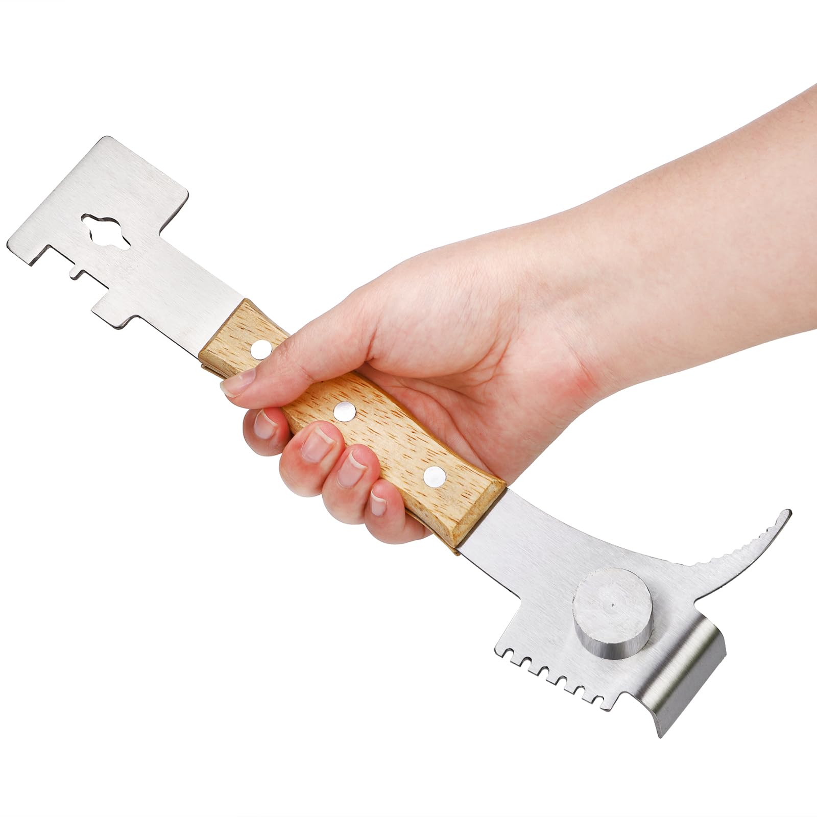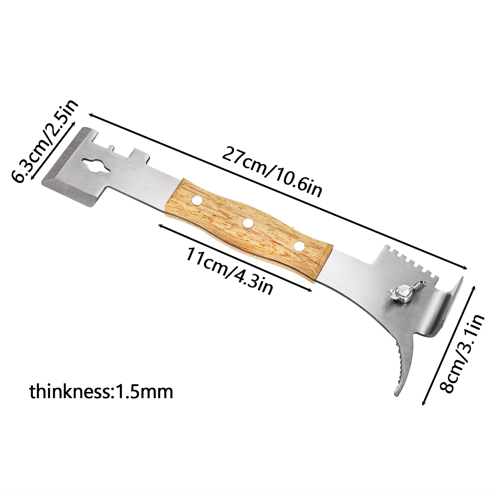 Easy To Use: The double-headed scraper tool is designed for easy use, and the solid wood handle provides a comfortable grip, this hive tool beekeeping with four functions on one end and three on the other, ideal for any beekeeping task.