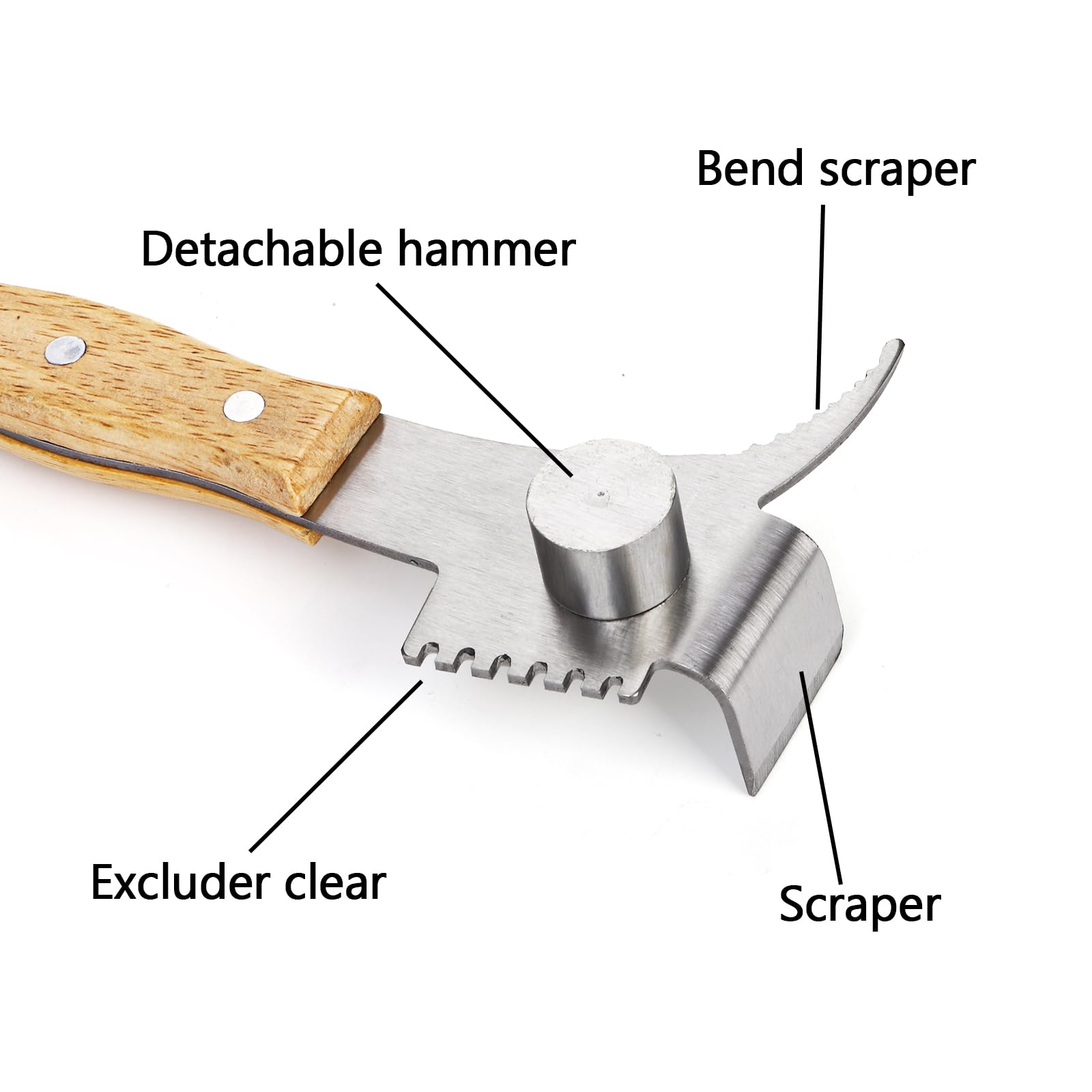 7 In 1 Hive Tool Beekeeping: 7 in 1 multifunctional beekeeping equipment, it be used as J hook hive tool / regular hive tool / Queen excluder / Detachable hammer / frame grip /paint scraper tool/claw hive tool / nail puller. Great for beekeeper beekeeping equipment.