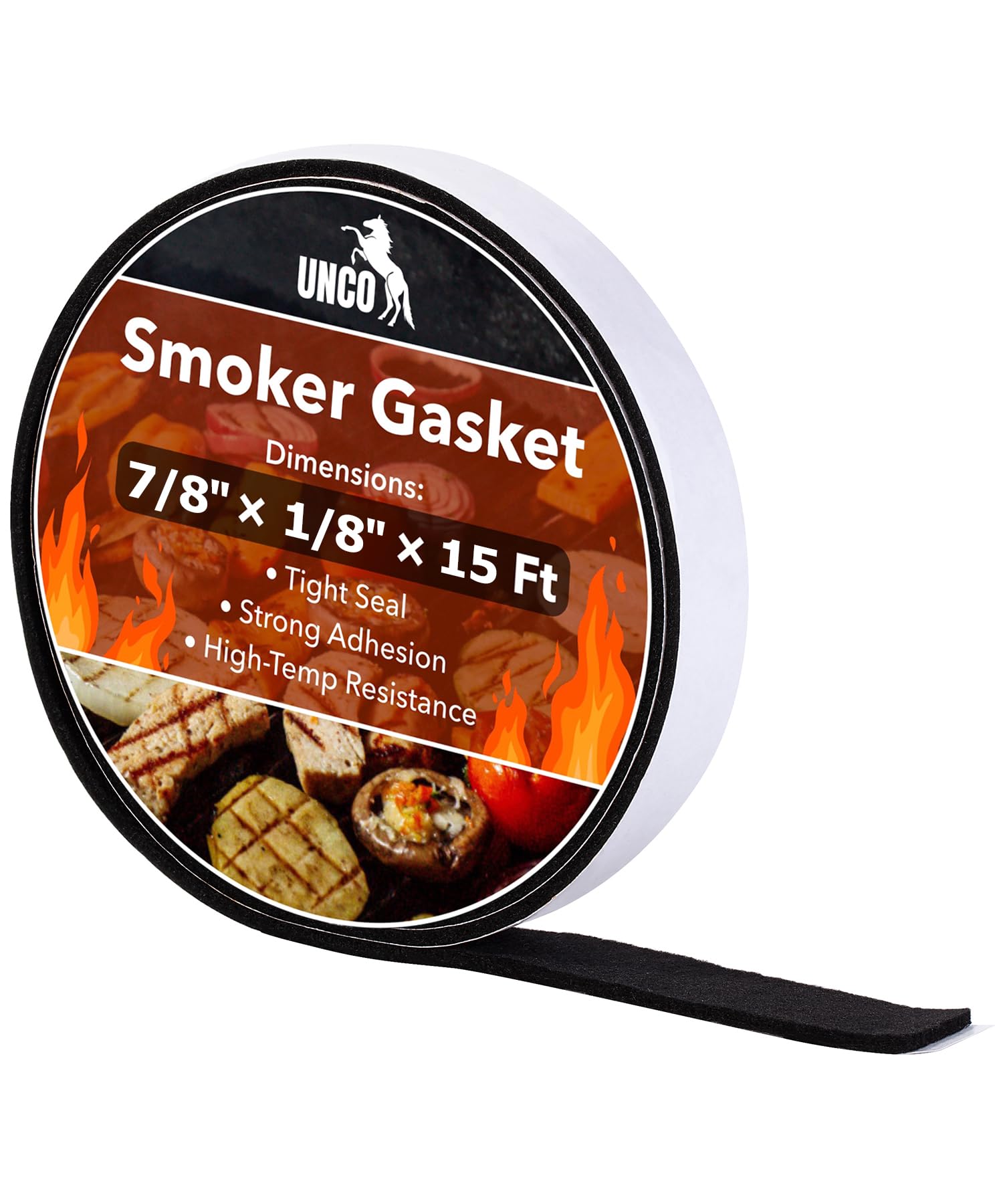 UNCO smoker gasket is designed to create a tight, heat-resistant seal that enhances heat retention and smoke control in grills and smokers.