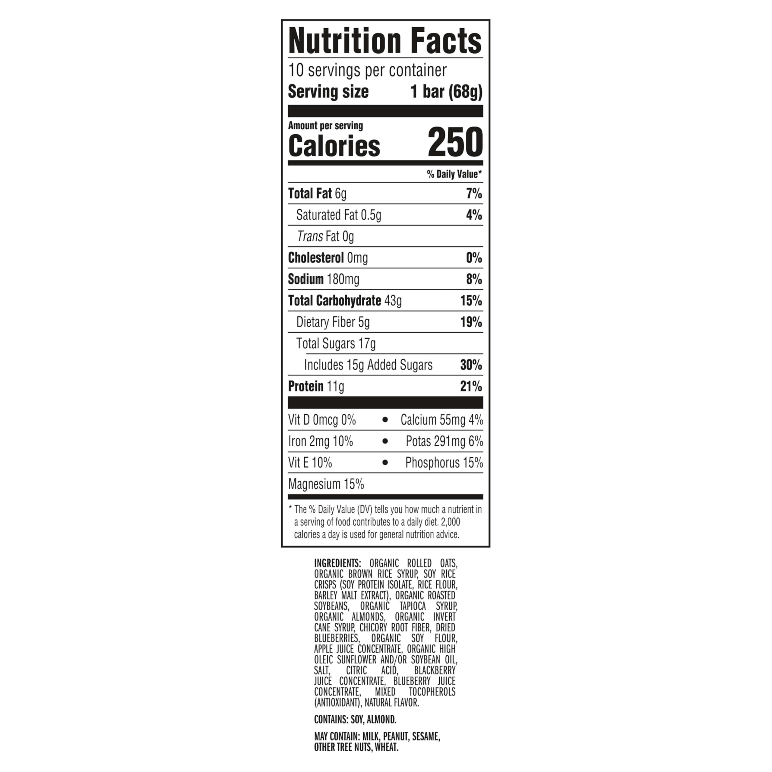 BLUEBERRY CRISP FLAVOR: Includes one 10-pack box of Blueberry Almond Crisp energy bars made with organic almonds and dried blueberries for a fruity favorite on-the-go (packaging may vary)