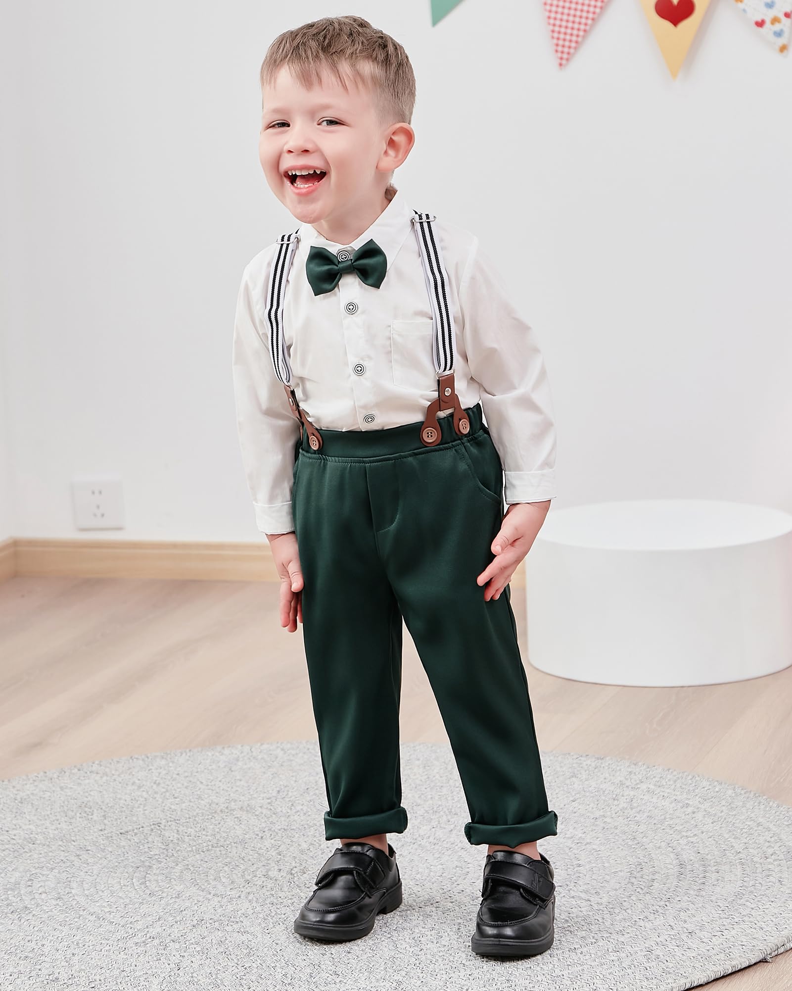 Design: Toddler boy dress clothes, classic color matching detachable bowtie and suspender pants. You'll never worry about how to match your cute boy!