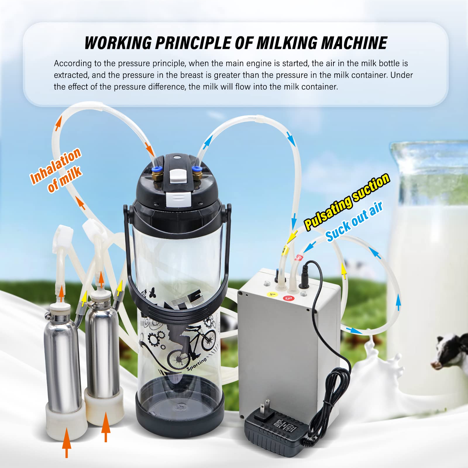 This Milker is Specially Designed for The Sheeps Goats: The milking speed is adjustable. You can adjust the speed according to the rate of flow. Avoid broking the milking bottle.