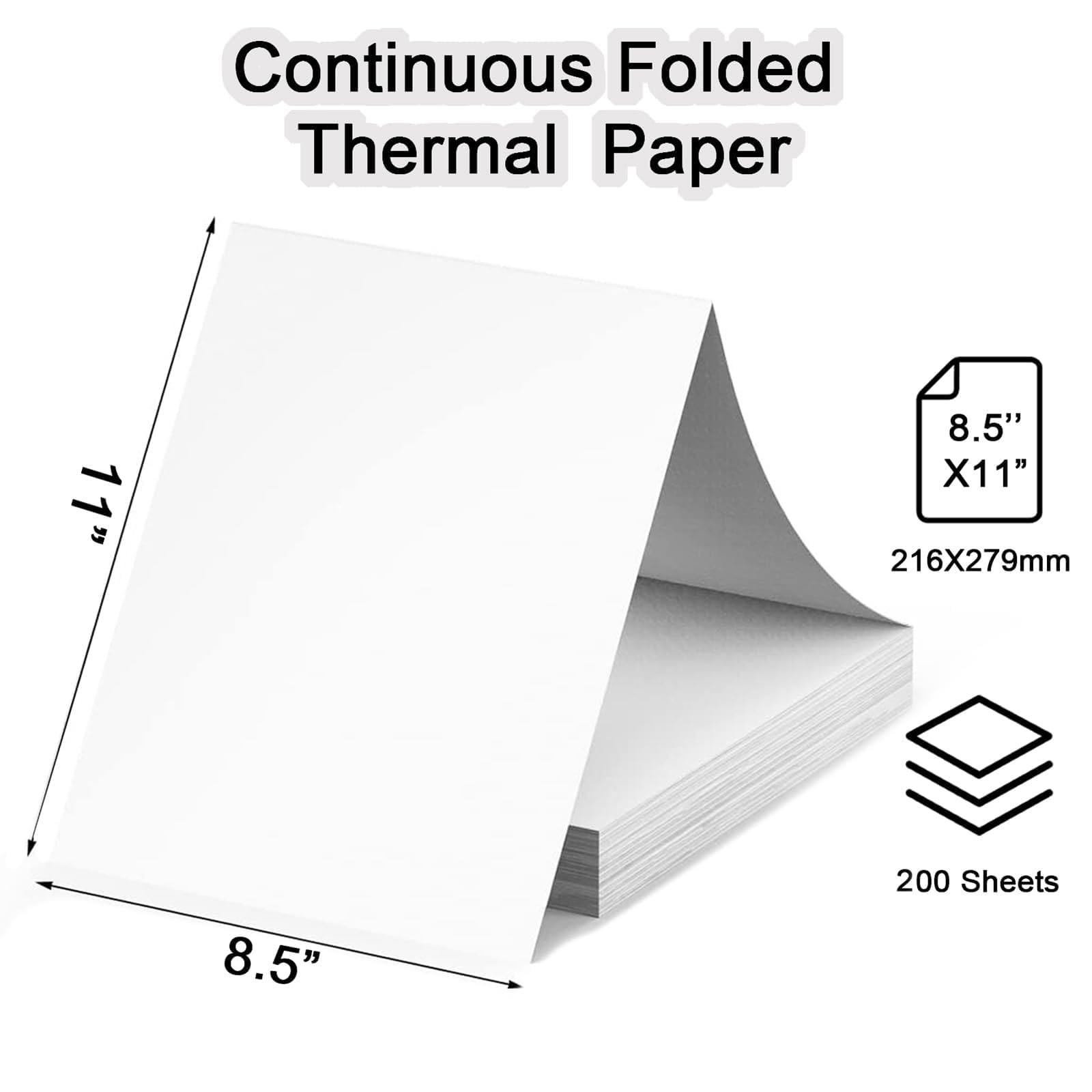 Thermal Printer Paper 8.5 x 11 Inch, 200 Sheets US Letter Size Thermal Paper, Compatible with M08F/A40 Thermal Portable Printer, Continual Feeding Folded Printing Paper (200 Sheets/Continuous Folding)