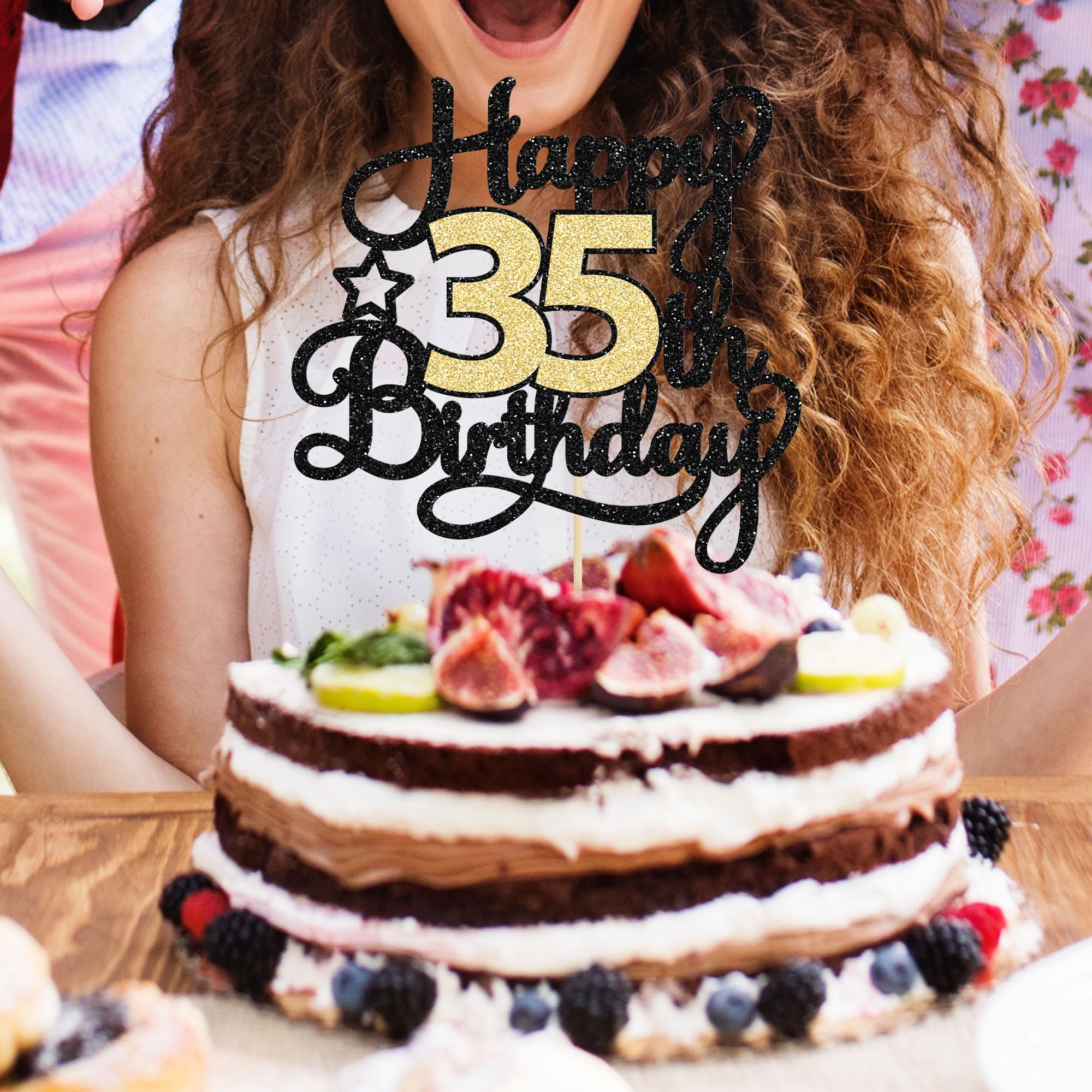 【Happy Birthday Party Supplies】: 1Pc Happy 35th Birthday Cake Topper is perfect for happy 35th birthday theme party, cheers to 35 years theme party, 35 fabulous theme party, happy 35th birthday anniversary theme party cake decorations, they will make your cupcake more attractive and bring the fun to your party, make your guests fall in love with them!