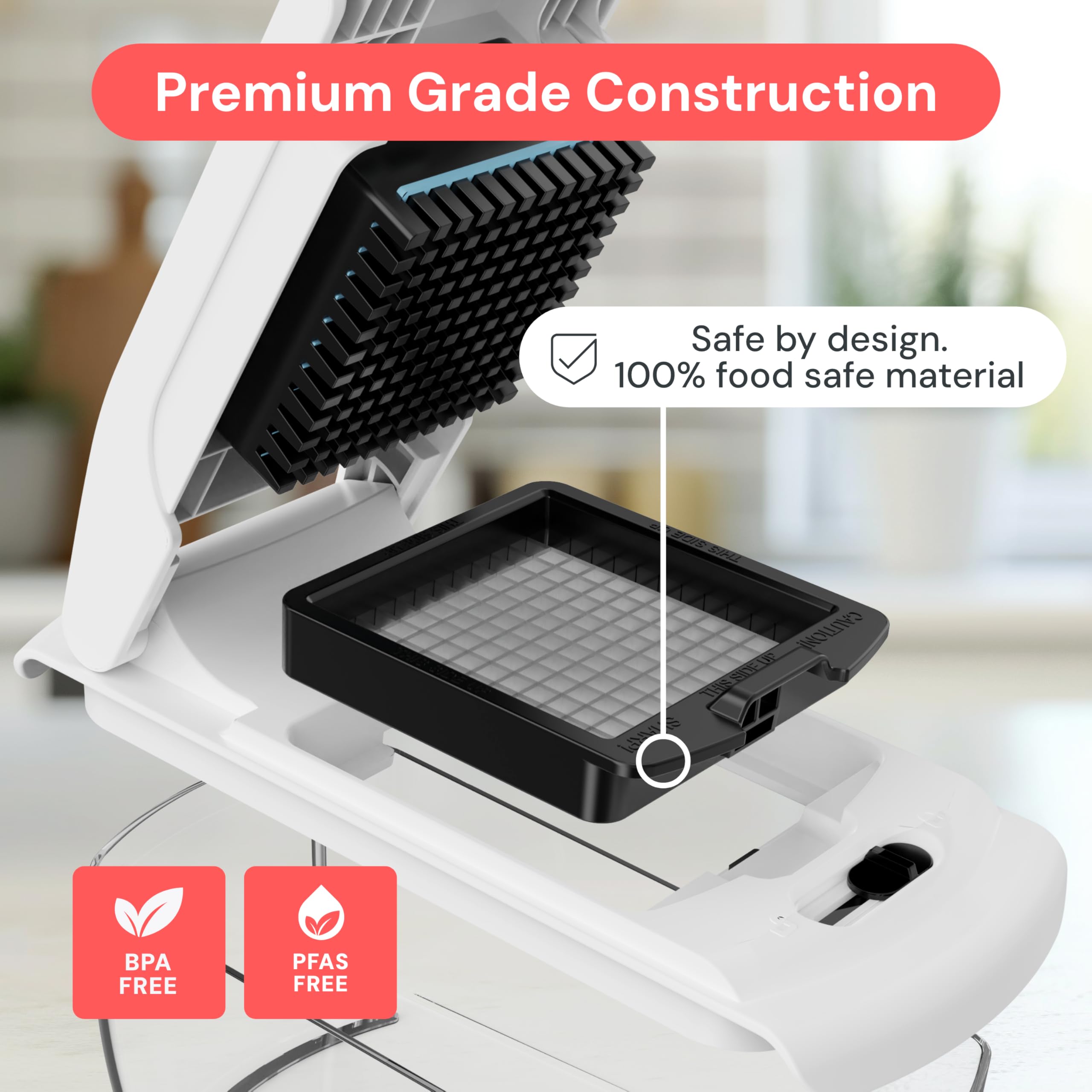 5-Star Design for Everyday Cooking β Built for comfort and precision. The soft-grip TPU handle offers better control, while the non-skid rubber base keeps this BPA-free food chopper stable on any surface. Its built-in catch tray keeps counters clean β making it a perfect house warming gift!