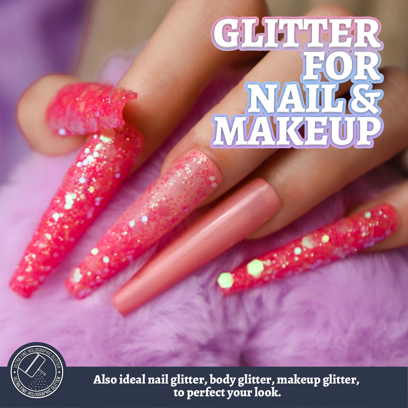Great Glitter for Beauty: Also Fabulous nail glitter, body glitter, eyeshadow glitter, face glitter, hair glitter, perfect your look in daily life and special occasions like wedding, party, costume event, Halloween, Christmas, Valentine’s day etc..