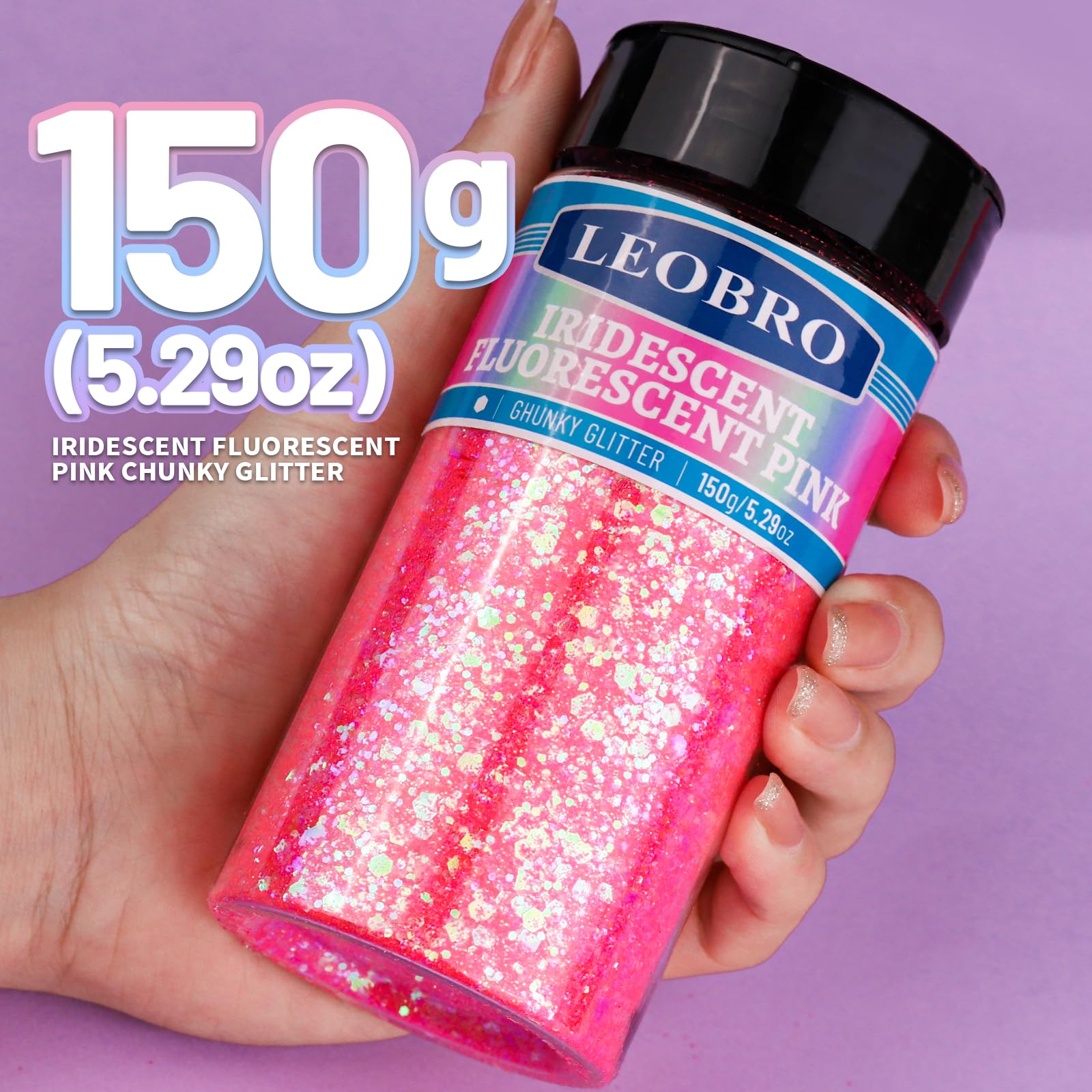 Iridescent Pink Chunky Glitter: N.W 150g/5.29oz pink glitter, supports a wide range of DIY projects. Gorgeous shiny iridescent pink glitter, along with secondary rainbow color, shines stunningly under light.