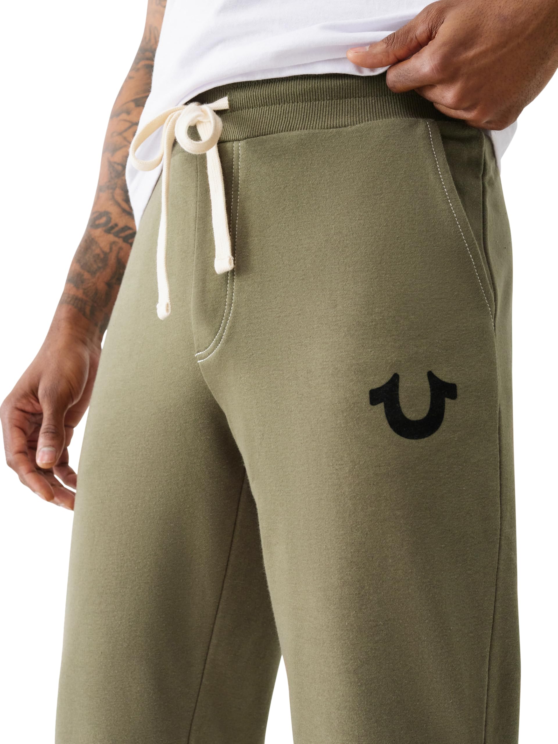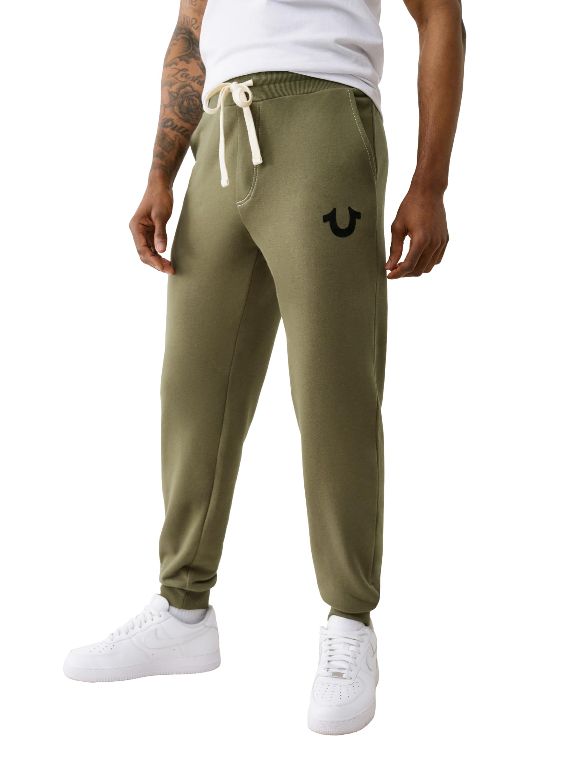 Description The True Religion Men’s Classic Logo Jogger Sweatpant combines premium comfort with everyday versatility. Crafted from soft, high-quality fabric, these sweatpants are built for lounging, workouts, or on-the-go wear. The elastic drawstring waistband and tapered jogger silhouette create a secure, modern fit, while the ankle hem completes the athletic look. Featuring hip pockets and a back patch pocket, these joggers for men offer convenient storage. Iconic True Religion details like the puff horseshoe logo at the hip and embroidered back pocket showcase authentic style. Designed to fit true to size, these men’s sweatpants provide dependable comfort every time. Whether you’re pairing them with sneakers and a hoodie or a casual tee, these mens joggers with pockets deliver the perfect balance of comfort, fit, and durability. A must-have mens jogger pants style, the Classic Logo Jogger brings elevated quality to everyday wear.