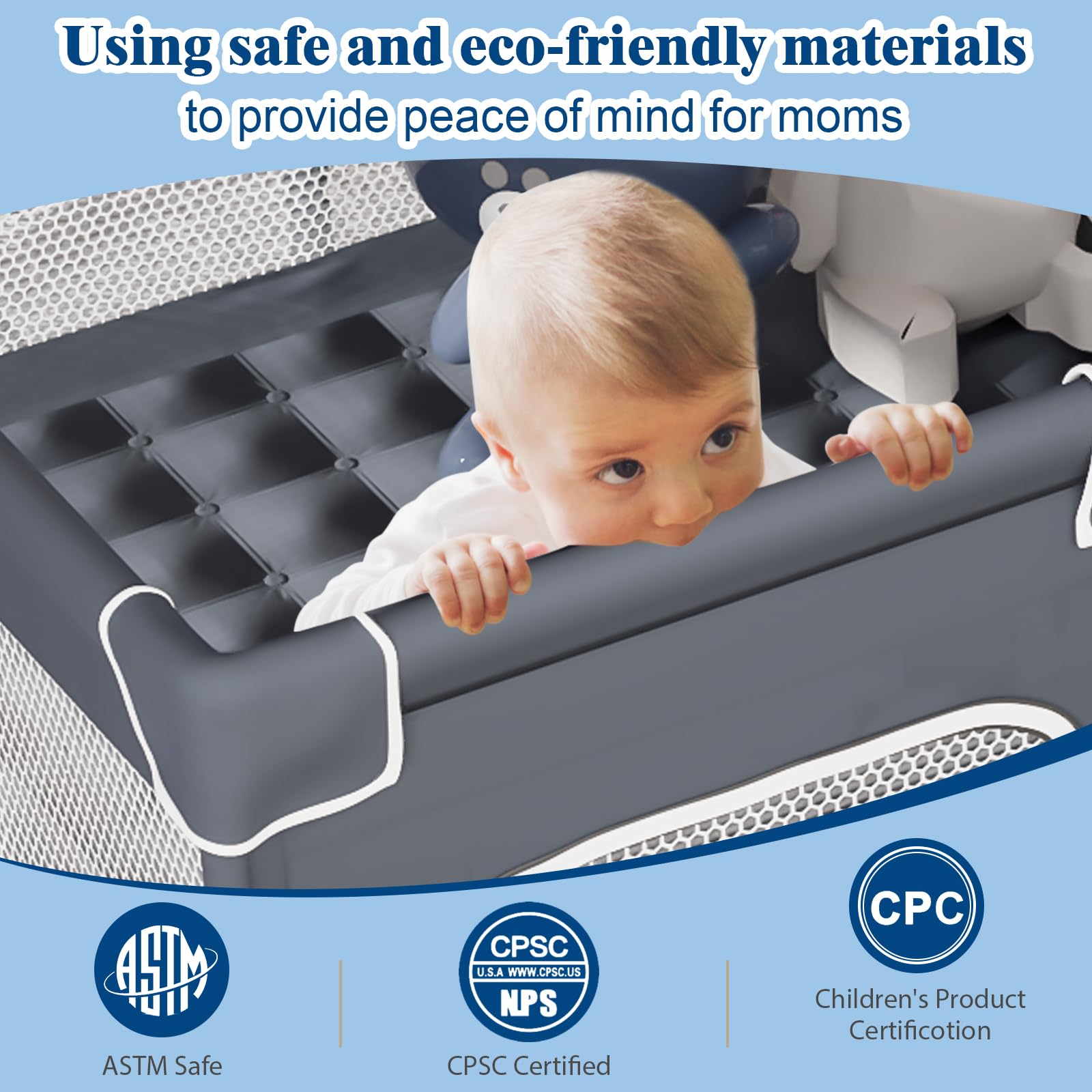 High-quality and Eco-friendly Materials: Our playpen uses materials that meet US safety standards (CPSC and ASTM certified). The fabric is durable and easy to clean, made from high-quality Oxford cloth.