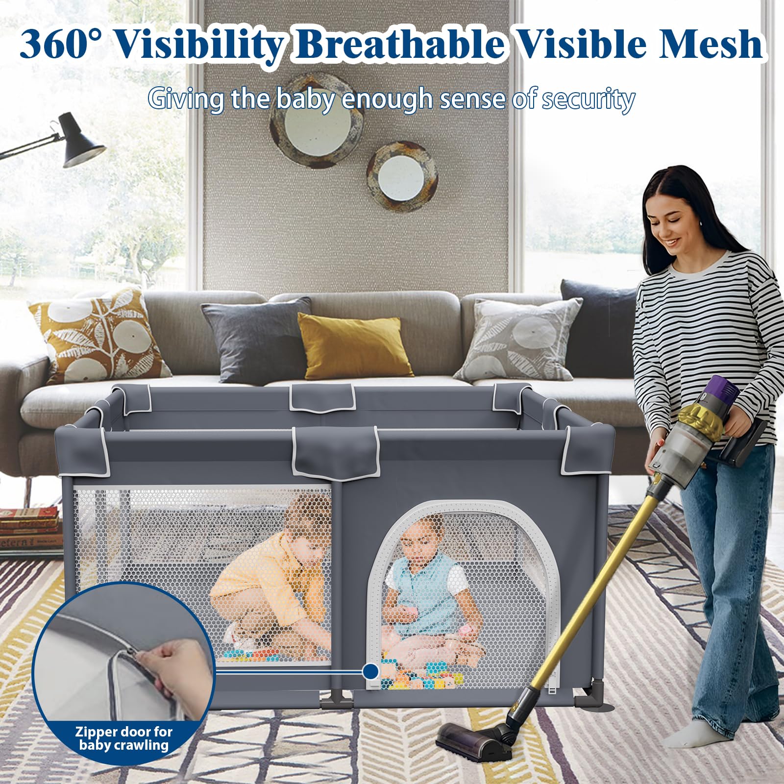 360° Full Visibility Design: The breathable mesh design allows parents to monitor their baby from any angle, ensuring peace of mind. The external door with a zipper lets you interact with your baby, providing a sense of security.