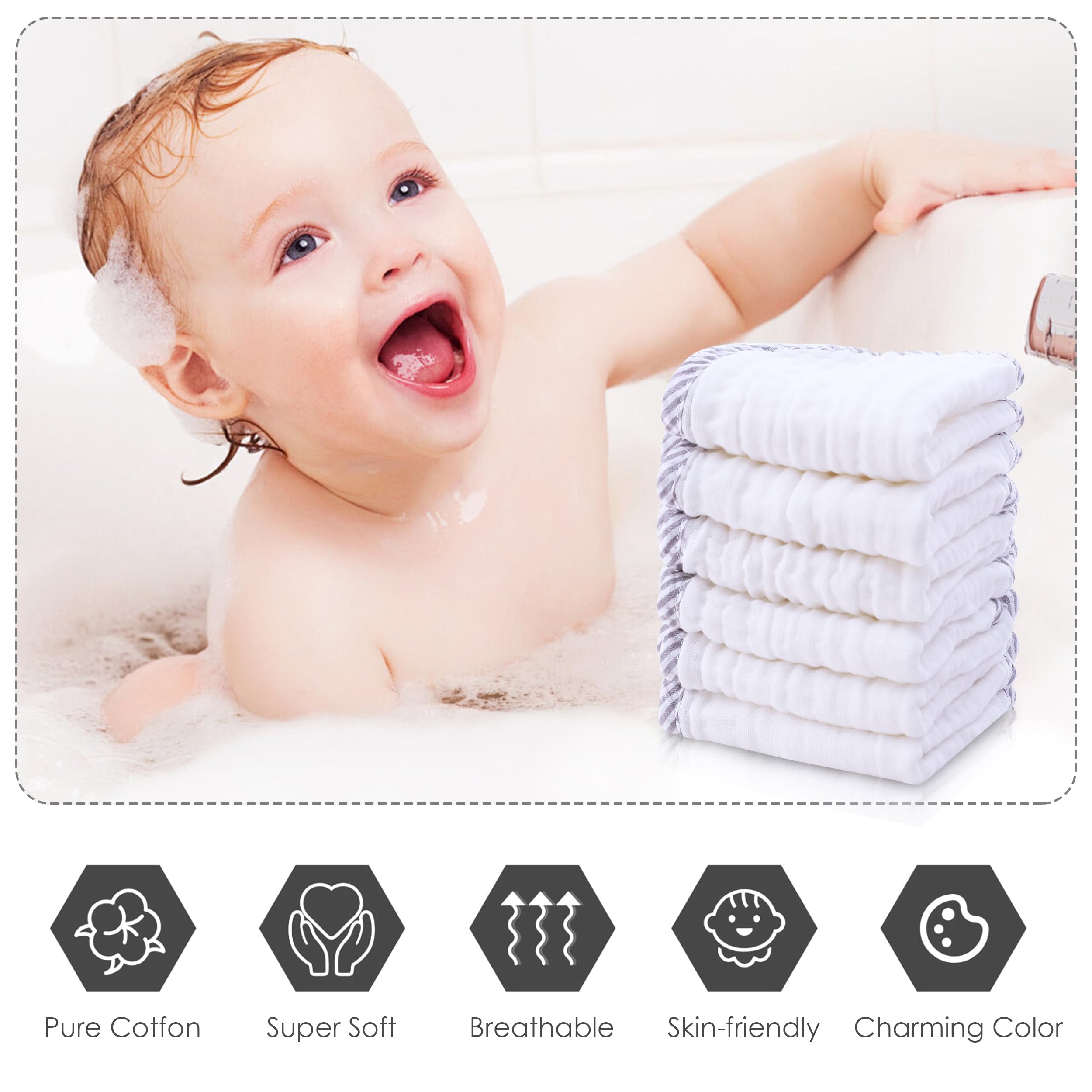 【Breathable and Quick-Drying】 The multi-layer breathable design of these washcloths ensures quick water absorption without feeling damp, keeping your baby comfortable and clean.