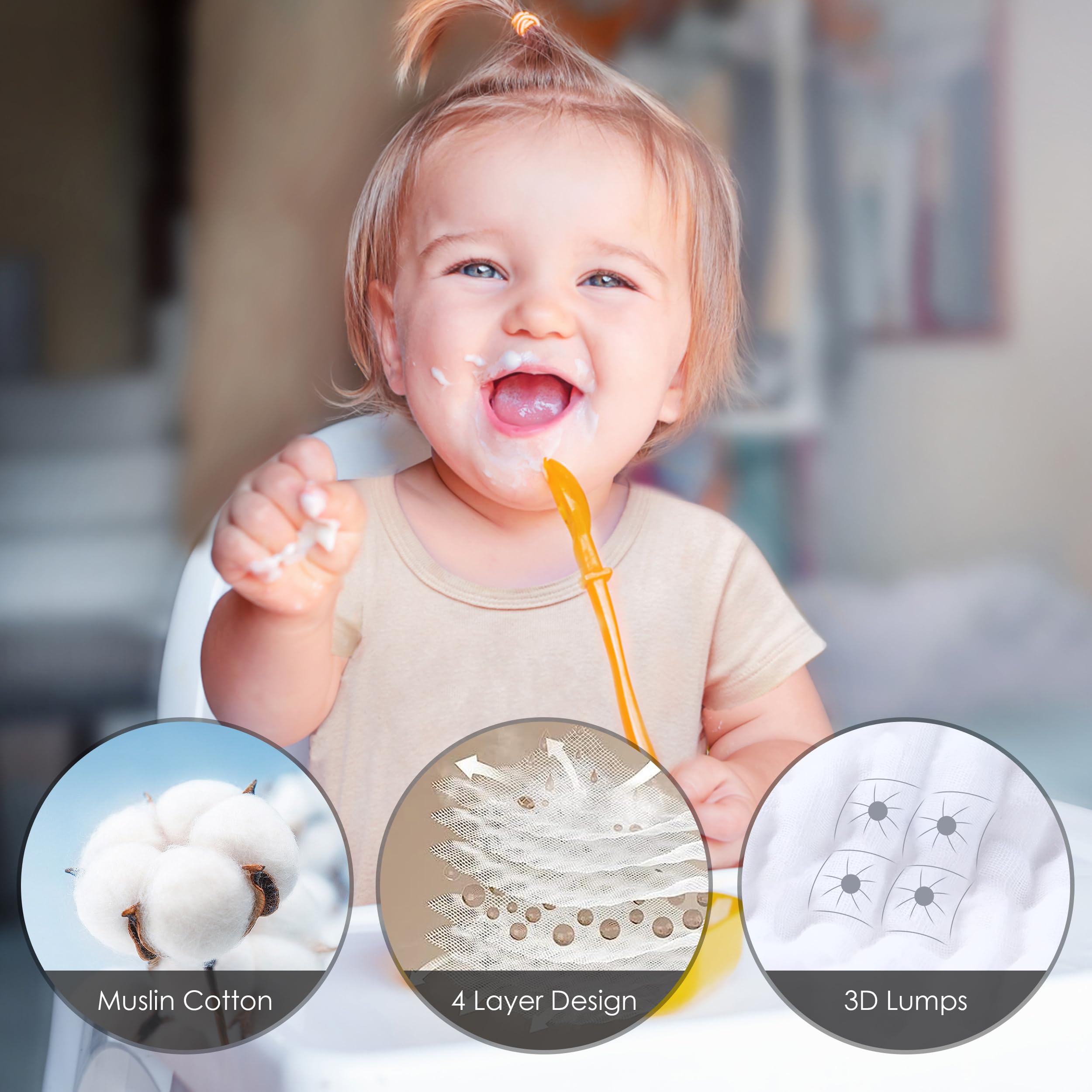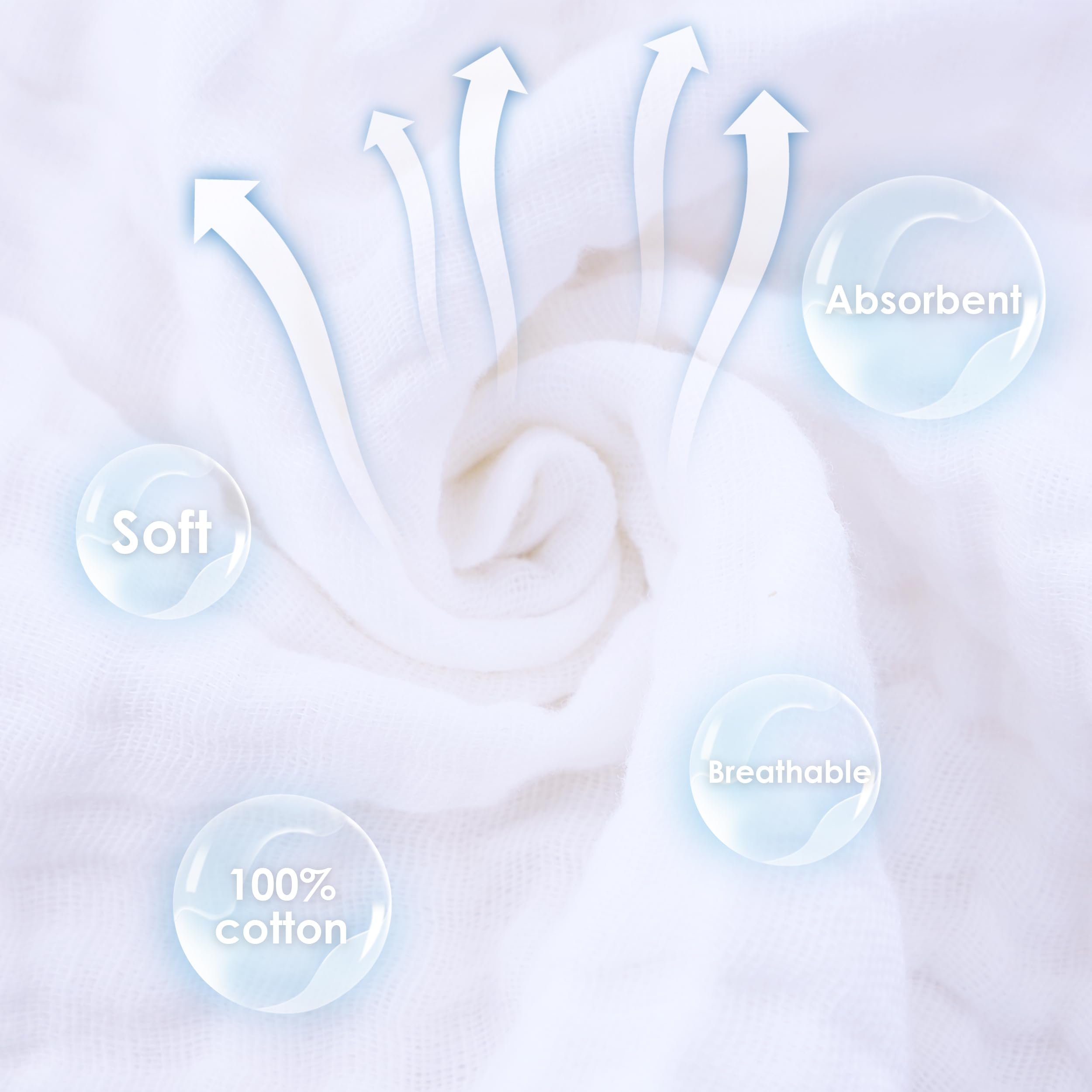 【Premium Muslin Cotton Washcloths】Indulge your baby with these ultra-soft and absorbent washcloths, crafted from 100% Muslin Cotton for a gentle touch on delicate skin.