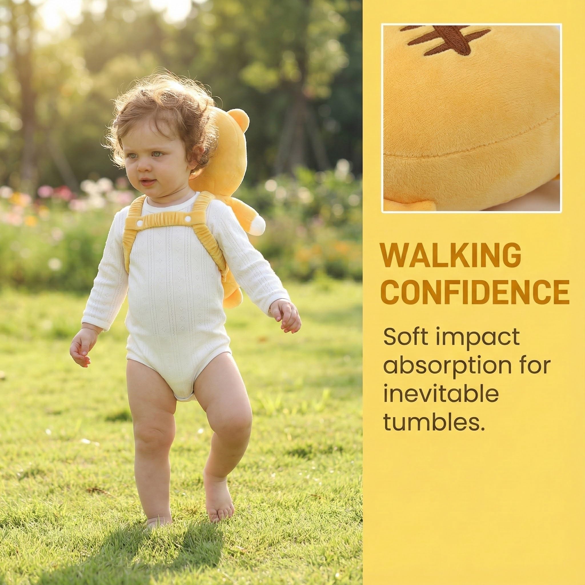 This head protector back pack for baby cushions falls, safeguarding delicate heads. Perfect for active babies with a soft, padded design that offers comfort and protection.