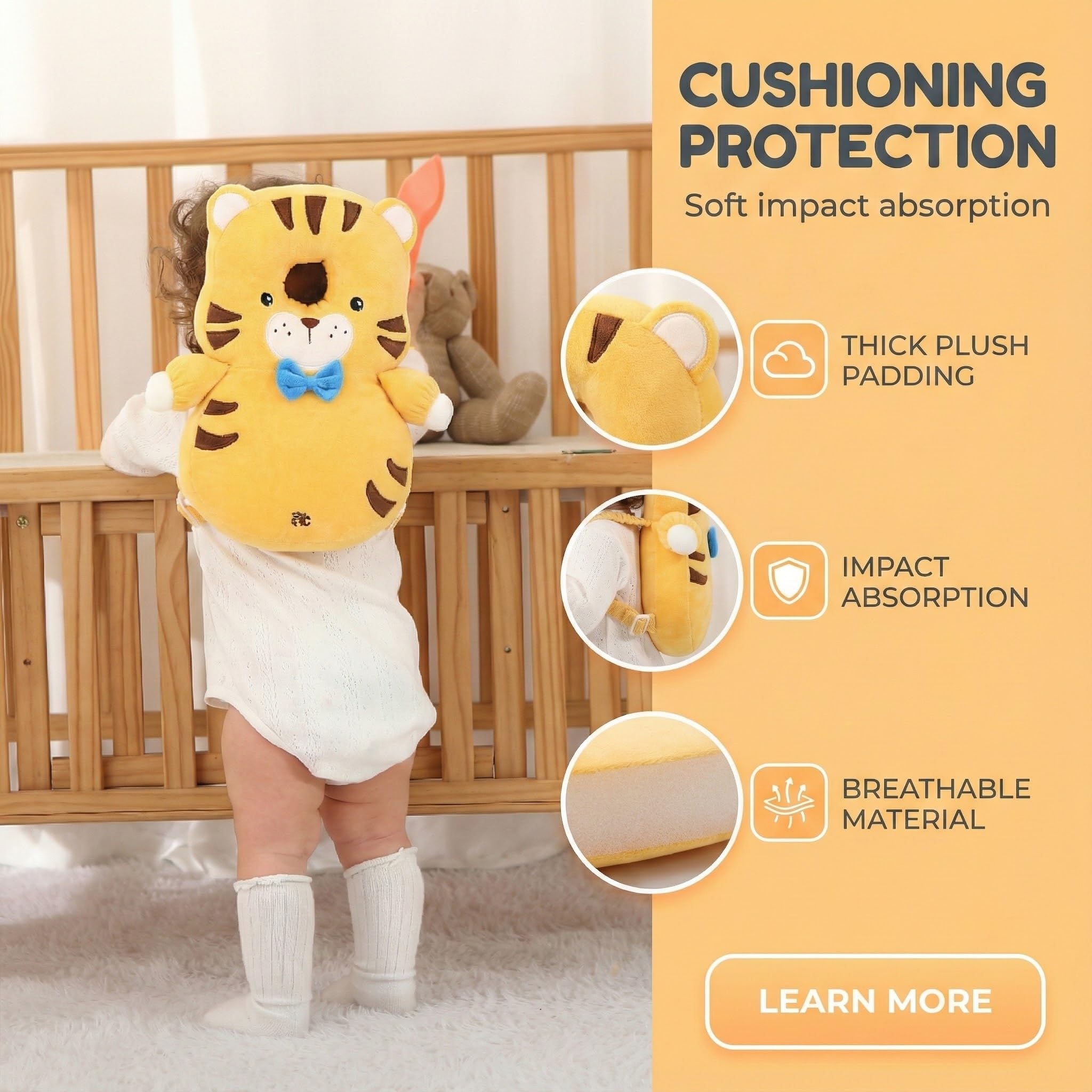 This baby backpack head protection pillow is also an adorable stuffed animal that protects your baby while also attracting their attention!