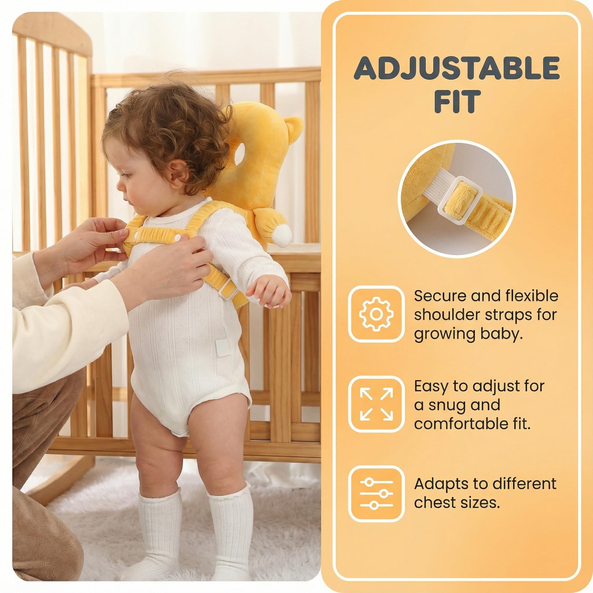 This head pillow for baby falling has adjustable straps for toddlers of different ages to wear.