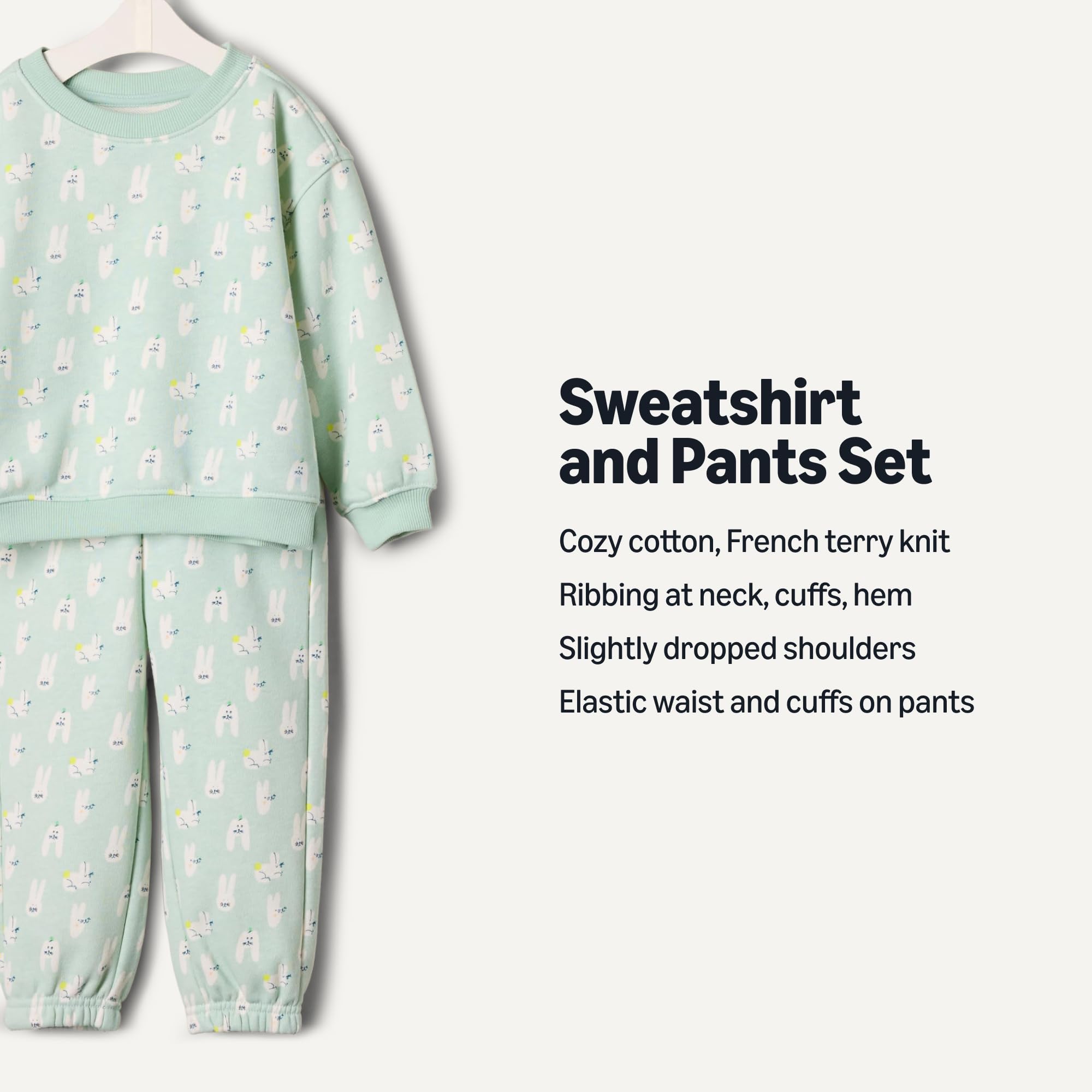 DETAILS: Sweatshirt features slightly dropped shoulder and soft ribbing at neck, cuffs and hem. Pants feature elastic waist and cuffs