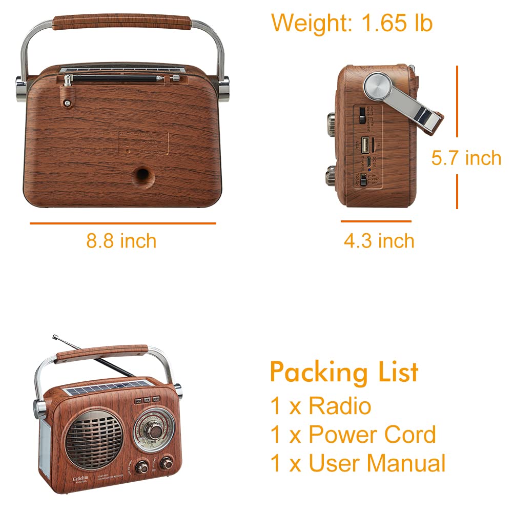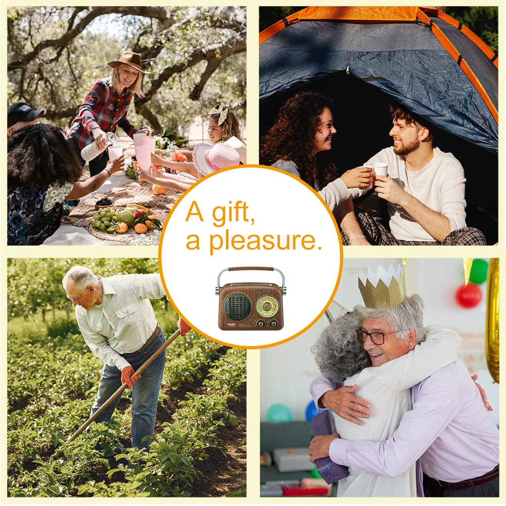 【Ideal Gift and Perfect for Daily Life】The portable radio is easy to operate for both elder and children as the knobs are large to tune and the letter is clear to see.With good size design and handle, small radio can be taken anywhere. In addition, it features a charmingly vintage look, perfect to decorate your home. Suitable for various occasions such as camping, kitchen, living room, outdoor activities. Really a great companion. It also be a thoughtful gift for elders, family, and friends.