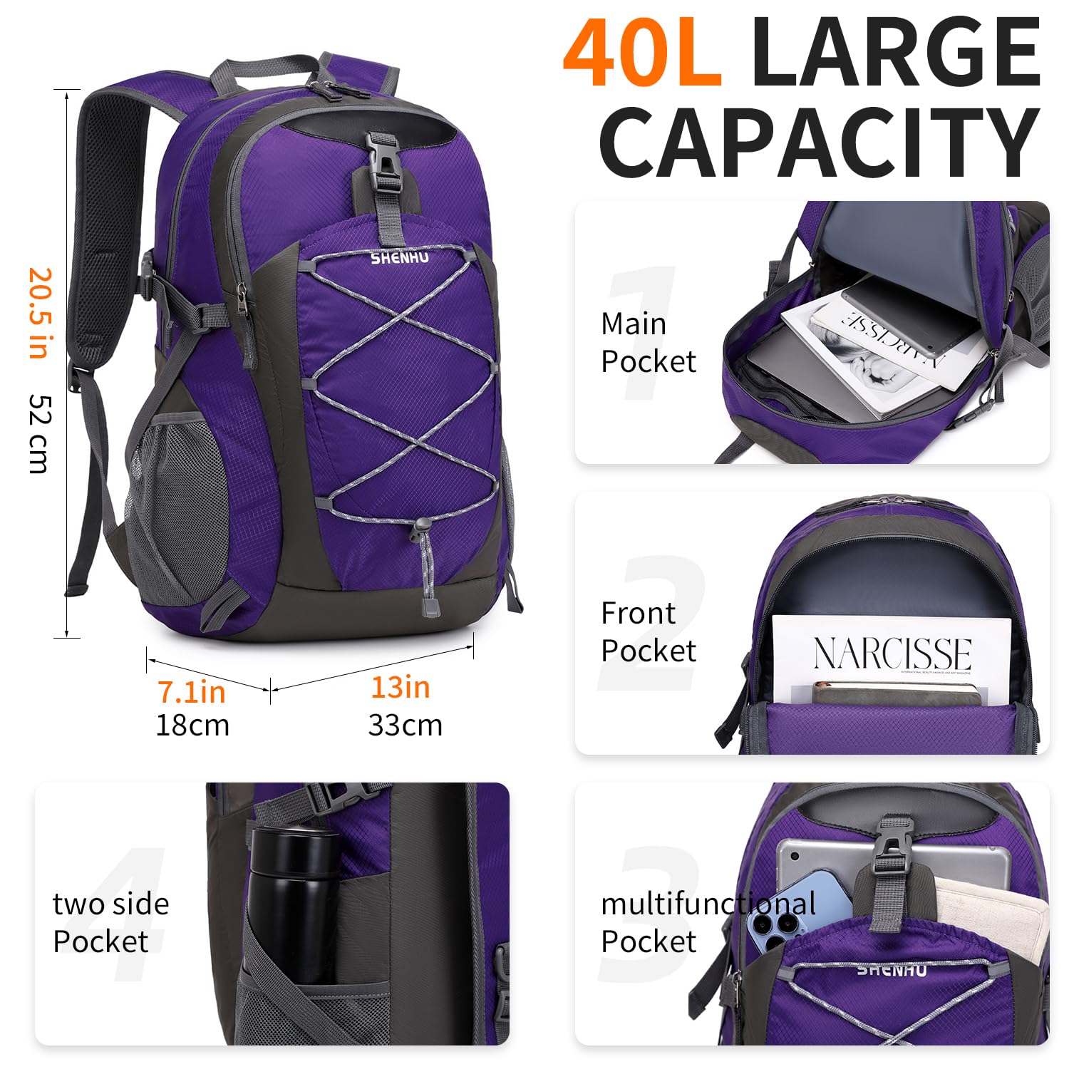 Water Resistant & DURABLE: Waterproof Material included. SHENHU camping backpack is made of tear-resistant, water-resistant and anti-abrasion polyester fiber. All stress points are reinforced with bar tacking to increase its longevity.