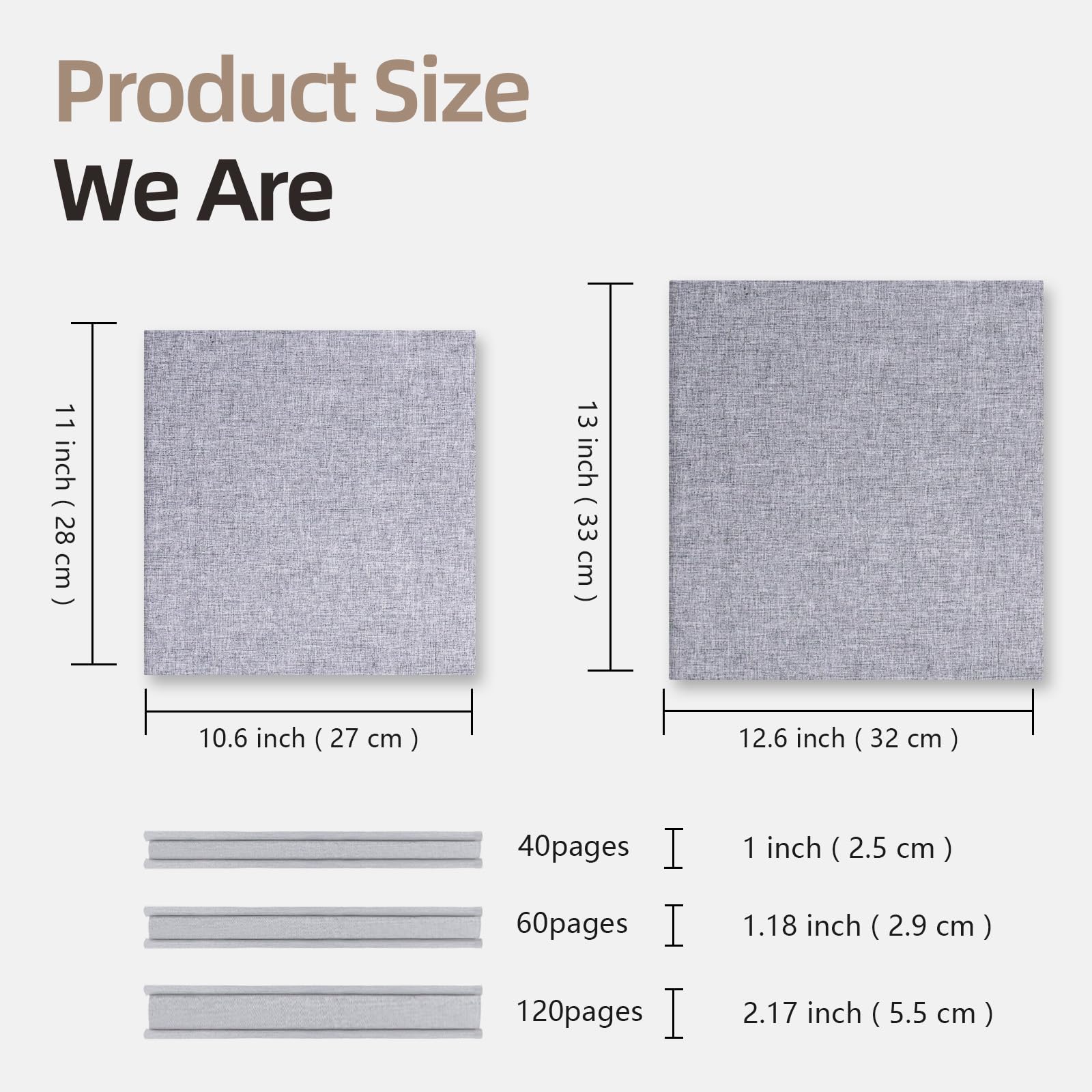 Size: The external size is length 11 x width 10.6(inches), internal self-adhesive page length 10.8 x width 8.6 (inches), 20sheets/40 pages, can hold 120 4x6 or 40 8x10 photos